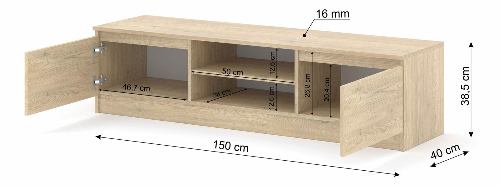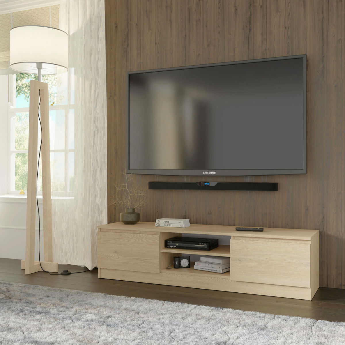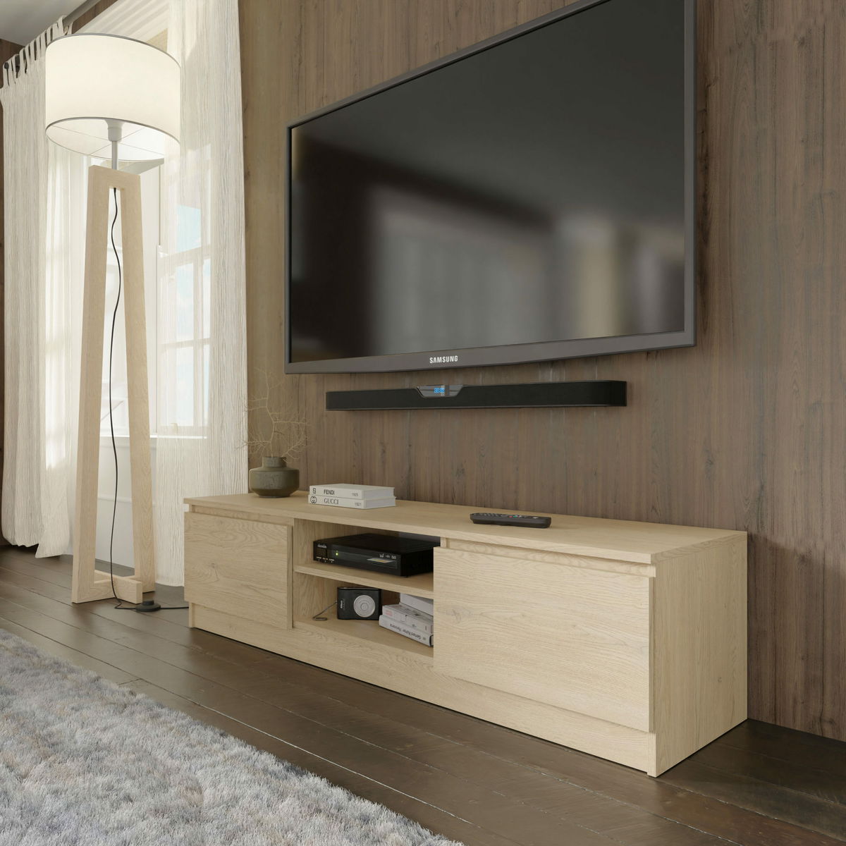 ZobrazitOdolná konstrukce a prostorný interiér tohoto TV stolku zajišťují každodenní pohodlí a pořádek. Jednotka je vyrobena z masivní 16 mm laminované desky a hladká přední strana bez úchytek zdůrazňuje moderní design a snadné používání.