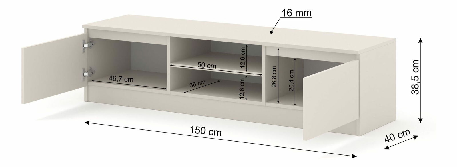 ZobrazitOdolná konstrukce a prostorný interiér tohoto TV stolku zajišťují každodenní pohodlí a pořádek. Jednotka je vyrobena z masivní 16 mm laminované desky a hladká přední strana bez úchytek zdůrazňuje moderní design a snadné používání.