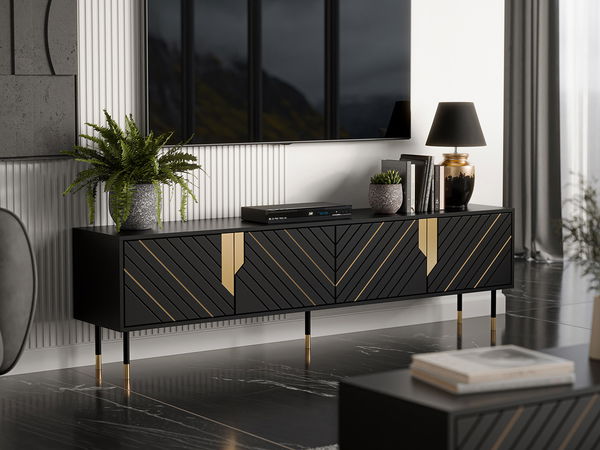 TV skříňka/stolek Mediana 4D (černá + zlatá)