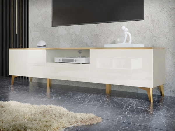 TV skříňka/stolek Opuncie 2D1S (béžový lesk + zlatá)