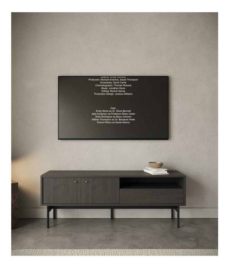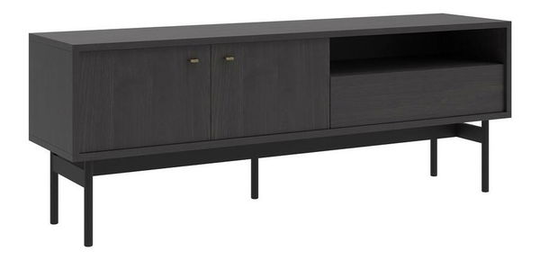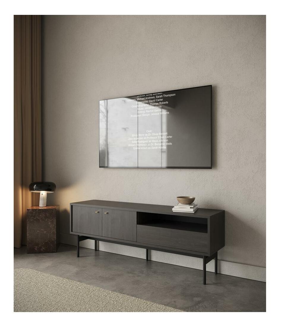 ZobrazitChcete změnit vzhled vašeho interiéru? Výběrem naší kolekce potěšíte své hosty tím, že vnesete do svého obývacího pokoje jedinečné uspořádání, zdůrazňující jemnost, eleganci a zároveň harmonii. TV skříňka s jedinečným designem dokonale zapadne do moderních interiérů. Je vyroben z kvalitní laminované dřevotřískové desky, která zajišťuje dlouhodobé a bezproblémové používání. Jeho charakter obohacuje pevný rám vyrobený z oceli, který činí nábytek nejen odolným, ale dodává mu i industriální šarm. Rafinovaný detail v podobě zlatých úchytek je zase nejen praktickým prvkem, který usnadňuje otevírání, ale dodává celé skříňce také jemný lesk. Skříňka byla navržena s ohledem na funkčnost, proto má otevřený výklenek na vybavení, zásuvku na drobnosti a uzavřený výklenek s policí. Černý portlandský jasan v kombinaci s černým rámem a zlatými úchyty dodává interiéru rafinovaný charakter. Tento kus nábytku je nejen praktickým úložným řešením, ale také designovým prvkem, který zdůrazní individuální styl každé místnosti. Kolekce - vyberte si dokonalost pro svůj interiér ještě dnes Detaily produktu: korpus a čela z laminované desky Portland Ash Black R34032, rám z černé prášek lakované oceli, která usnadňuje udržování pořádku pod nábytkem, zásuvka otevíraná zatlačením! to method open“, rukojeti zlaté barvy z broušené oceli.