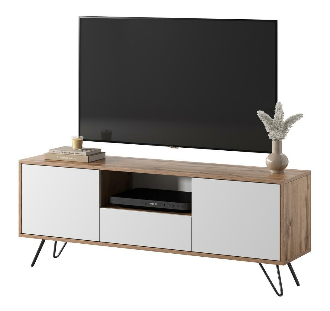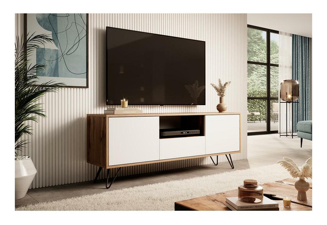 TV skříňka/stolek Polynesia (s osvětlením) (dub wotan + bílá)