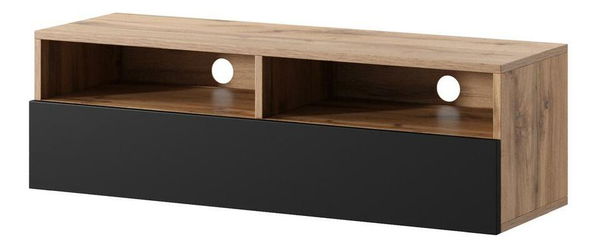 Rádi relaxujete lenošením na gauči a díváním televize nebo hraním na oblíbené konzole? Hledáte kus nábytku, který bez problémů zvládne veškerou vaši elektroniku a umožní vám užívat si krásného a uklizeného prostoru? V bohaté kolekci TV skříněk si jistě najdete něco pro sebe! Nádherná TV skříňka je návrhem, který lhostejně neprojde žádný milovník moderních řešení uspořádání. Tento kus nábytku zaujme jedinečným, lehkým designem, dokonale v souladu s aktuálními trendy, pečlivým zpracováním a smyslem pro ten nejmenší detail. Díky tomu jsme získali produkt, který vám pomůže vytvořit funkční a na pohled pěkný multimediální koutek v každém obývacím pokoji, ložnici či herně a umožní tak vaší rodině klidně se věnovat svým oblíbeným činnostem. je vybaven dvěma otevřenými přihrádkami ideálními pro uložení nejčastěji používaného vybavení. konzole nebo dekodéru. Tyto dutiny umožňují dostatečnou cirkulaci vzduchu, která ochrání elektroniku před přehřátím. Navíc nebudou rušit signál přicházející z příslušenství, takže zapomenete na podložku, která nedosahuje dosahu nebo nefunkčního dálkového ovládání. Součástí nábytku je také prostorná zásuvka, do které můžete bezpečně uložit příslušenství potřebné pro pohodlné používání zařízení, včetně: krabice her a filmů. Celek je zakončen širokou stolu deskou, na kterou můžete umístit televizor nebo, pokud si přijímač zavěsíte na zeď, ozdoby a dekorace. Detaily produktu: korpus produktu je vyroben z laminované desky o tloušťce 16 mm, díky čemuž je odolný vůči poškození a poškrábání, čelo je vyrobeno z MDF desky, zásuvka využívá kvé kuličková vedení, umožňující plynulé vysouvání, moderní styl, schopnost rozhodnout se ve stádiu montáže o umístění zásuvky - v horní nebo dolní části konstrukce.