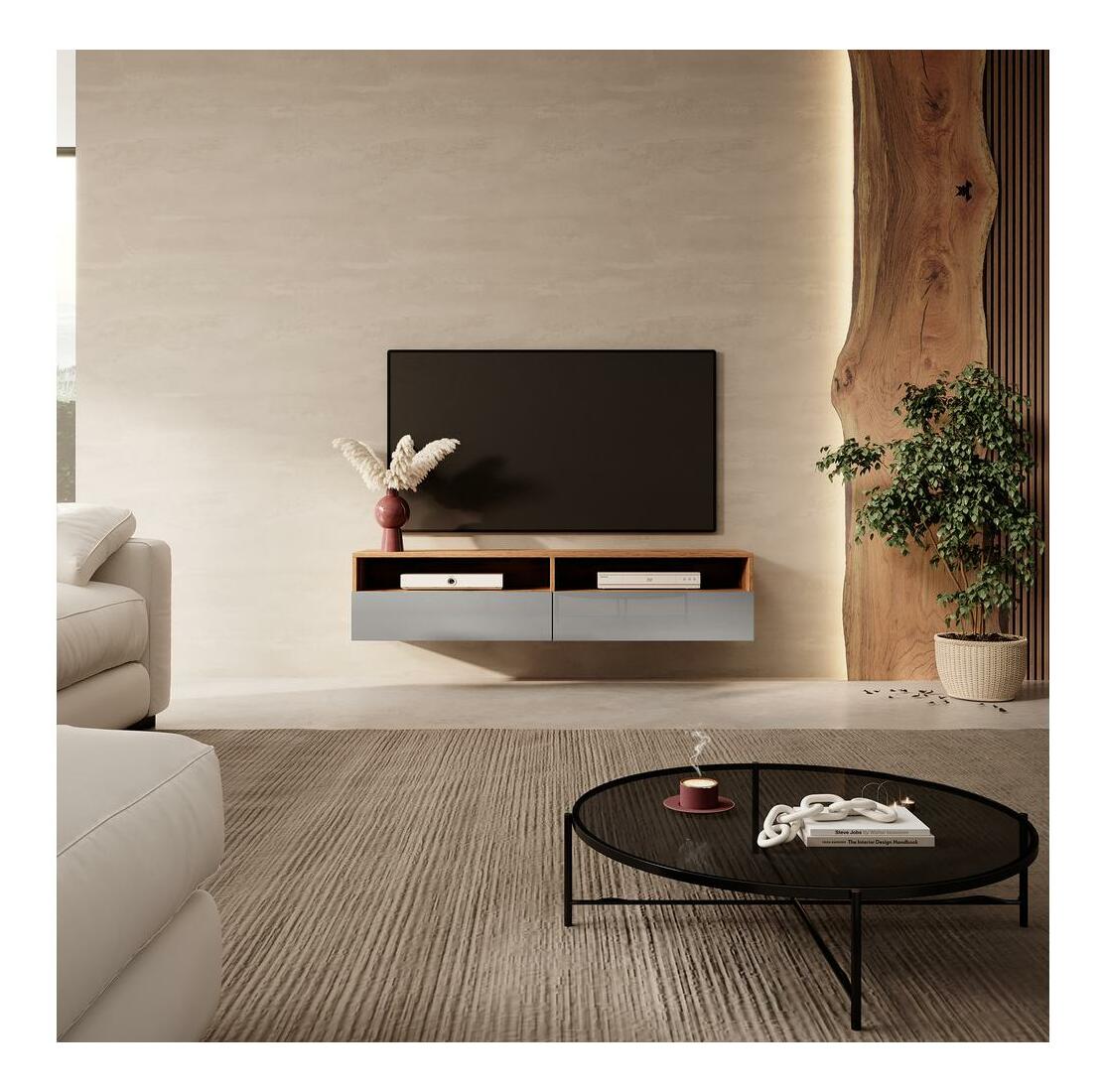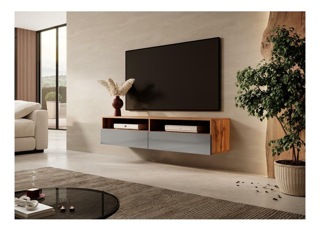TV skříňka/stolek Redcan 140 (s osvětlením) (dub wotan + šedá)