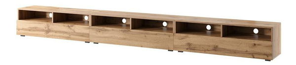 Rádi relaxujete lenošením na gauči a díváním televize nebo hraním na oblíbené konzole? Hledáte kus nábytku, který bez problémů zvládne veškerou vaši elektroniku a umožní vám užívat si krásného a uklizeného prostoru? V bohaté kolekci TV skříněk si jistě najdete něco pro sebe! Televizní skříňka je určena pro ty nejnáročnější uživatele, kteří mají rozsáhlou sbírku elektroniky a příslušenství. Produkt, který představujeme, potěší každého svým stylovým designem, který zohledňuje vše nejlepší v současných trendech a navíc nabízí překvapivě velkou kapacitu. Nábytek má tři prostorné šuplíky s dostatečným prostorem pro všechny věci, které při relaxování potřebujete. Krabice s filmy nebo hrami, extra podložky, drátěné cívky nebo možná nabíječky a baterie? S nikdy nezapomenete, kde jsou! Kromě toho budou tyto položky chráněny před škodlivými účinky prachu a vzdušné vlhkosti. V horní části naší skříňky je až šest otevřených výklenků. Toto řešení vám umožní snadno uspořádat všechna nejčastěji používaná zařízení. set-top boxy nebo konzoly tak, aby k nim měl volný přístup vzduch, čímž se předejde riziku přehřátí. Celek je zakončen extrémně širokou stolu deskou, na kterou můžete umístit televizor nebo dva, jakož i různé dekorace a doplňky, které dodají prostoru osobní charakter, dle vašich potřeb. Podrobnosti o produktu: mnoho dostupných barevných kombinací umožňuje skříňku snadno sladit prakticky k jakémukoli uspořádání, korpus je vyroben z laminovaných desek tloušťky 16 mm, díky čemuž je skříňka odolná vůči mechanickému poškození, matné čelo je vyrobeno z laminované desky 16 mm, kvé, kuličkové vedení v zásuvkách, konstrukce sestává ze tří skříněk šířky 100 cm, je možné se rozhodnout již při montáži, zda umístit zásuvky – nahoře nebo dole do konstrukce, moderní design.