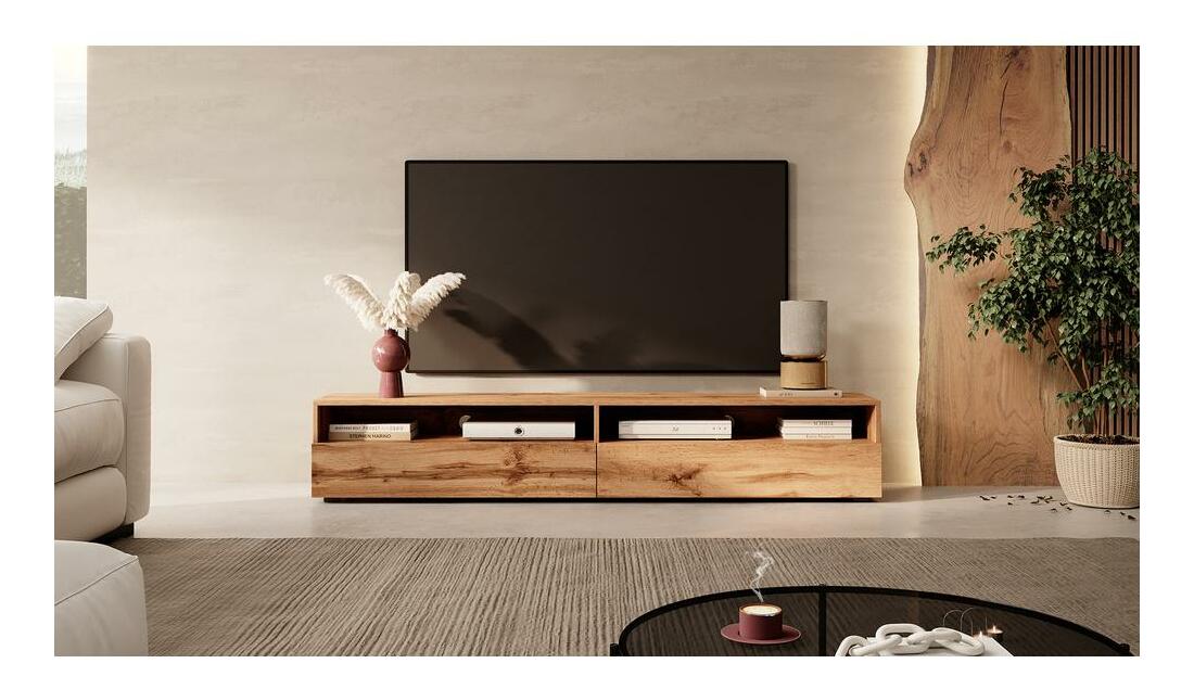 ZobrazitRádi relaxujete lenošením na gauči a díváním televize nebo hraním na oblíbené konzole? Hledáte kus nábytku, který bez problémů zvládne veškerou vaši elektroniku a umožní vám užívat si krásného a uklizeného prostoru? V bohaté kolekci TV skříněk si jistě najdete něco pro sebe! Moderní TV skříňka z kolekce je nabídka vytvořená pro náročné zákazníky, kteří si cení jedinečného stylu as radostí sledují moderní trendy. Tento krásný kus nábytku se proto bude vyznačovat příjemným minimalismem a geometrickými výraznými liniemi, které z něj udělají skutečně atraktivní doplněk nejen do současného obývacího pokoje, ale také do funkční ložnice či futuristické herny. Produkt navíc okouzlí každého svojí velkou kapacitou, která mu umožňuje dokonale ovládat prakticky jakýkoli elektronický chaos. Najdeme zde dvě otevřené prohlubně umístěné v horní části a dvě přihrádky uzavřené dvojicí chlopní. Toto řešení nabízí dostatek prostoru a možností uspořádat si věci tak, jak se vám líbí, takže si každý den užijete krásnou a stylovou kompozici. Otevřené komory navíc umožňují umístit do nich nejčastěji používaná zařízení, což umožní správné proudění vzduchu a chrání elektroniku před přehřátím. Celek doplňuje široká, prostorná stolová deska, na kterou snadno položíte televizi nebo své nejkrásnější poklady. Podrobnosti o produktu: široká škála barev výrazně usnadňuje výběr skříňky, která dokonale zapadne do vašeho interiéru, 16 mm silné laminované desky použité pro stavbu korpusu zajišťují její vysokou životnost a odolnost proti poškození, matná přední strana je vyrobena z 16 mm laminované desky. kuličková vedení v zásuvkách, moderní design.