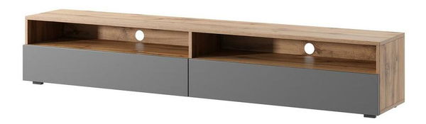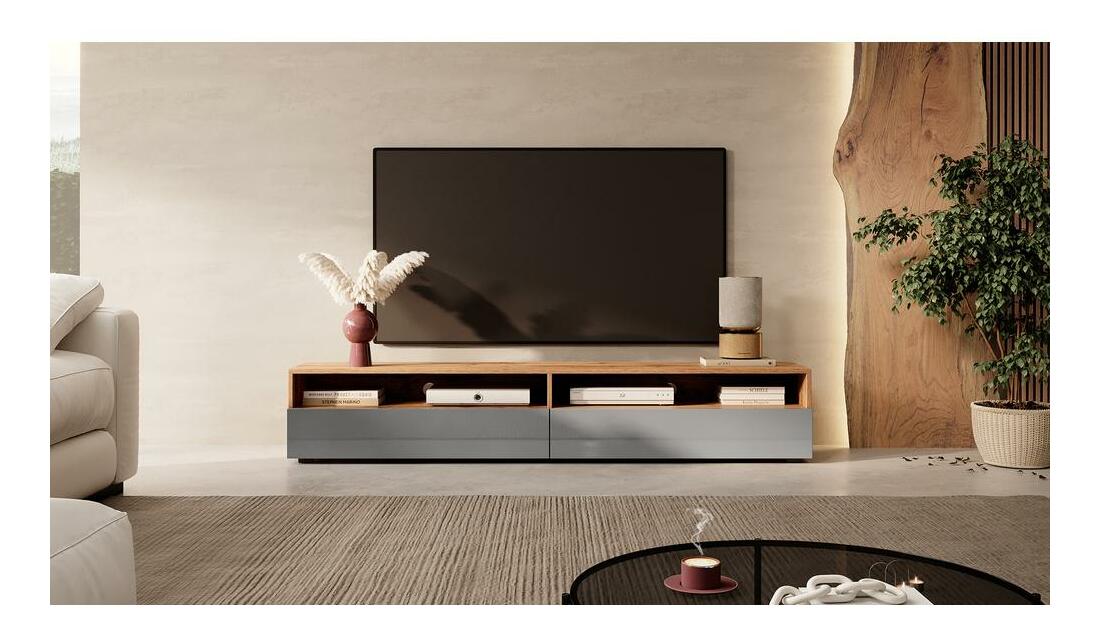 ZobrazitRádi relaxujete lenošením na gauči a díváním televize nebo hraním na oblíbené konzole? Hledáte kus nábytku, který bez problémů zvládne veškerou vaši elektroniku a umožní vám užívat si krásného a uklizeného prostoru? V bohaté kolekci TV skříněk si jistě najdete něco pro sebe! Moderní TV skříňka z kolekce je nabídka vytvořená pro náročné zákazníky, kteří si cení jedinečného stylu as radostí sledují moderní trendy. Tento krásný kus nábytku se proto bude vyznačovat příjemným minimalismem a geometrickými výraznými liniemi, které z něj udělají skutečně atraktivní doplněk nejen do současného obývacího pokoje, ale také do funkční ložnice či futuristické herny. Produkt navíc okouzlí každého svojí velkou kapacitou, která mu umožňuje dokonale ovládat prakticky jakýkoli elektronický chaos. Najdeme zde dvě otevřené prohlubně umístěné v horní části a dvě přihrádky uzavřené dvojicí chlopní. Toto řešení nabízí dostatek prostoru a možností uspořádat si věci tak, jak se vám líbí, takže si každý den užijete krásnou a stylovou kompozici. Otevřené komory navíc umožňují umístit do nich nejčastěji používaná zařízení, což umožní správné proudění vzduchu a chrání elektroniku před přehřátím. Celek doplňuje široká, prostorná stolová deska, na kterou snadno položíte televizi nebo své nejkrásnější poklady. Podrobnosti o produktu: široká škála barev výrazně usnadňuje výběr skříňky, která dokonale zapadne do vašeho interiéru, 16 mm silné laminované desky použité pro stavbu korpusu zajišťují její vysokou životnost a odolnost proti poškození, přední strana je vyrobena z MDF desek, kvé kuličková vedení v zásuvkách , moderní design.