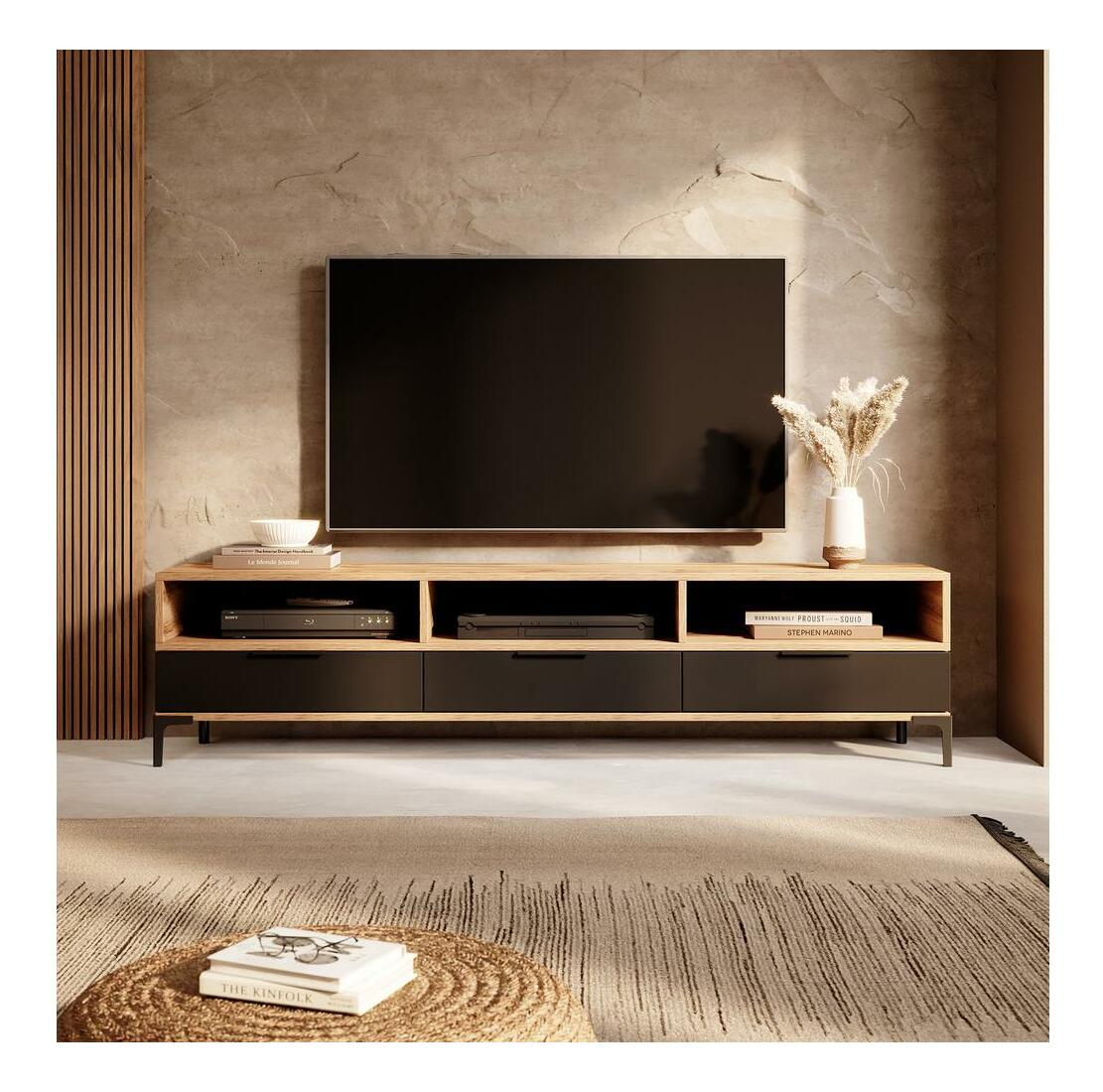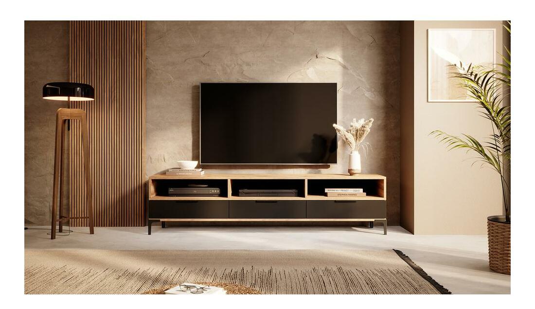 ZobrazitUž se nemůžete dívat na nepořádek ve vašem obývacím pokoji? Točí se vám po kabelech všude hlava? Uvolněte se! TV skříňka vám pomůže rychle a efektivně vyřešit oba problémy najednou! TV skříňka je moderní kus nábytku navržen tak, aby bez problémů uspokojil potřeby každého, i toho nejnáročnějšího uživatele. Nábytek dokonale zapadá do moderních trendů a svému majiteli nabízí nedotčenou krásu a vysoce funkční tvar. Díky tomu skříň skvěle zapadne do současných obýváků, zvláště pokud jejich uspořádání vykazuje industriální nebo loftové vlivy. je vybaven třemi otevřenými přihrádkami a třemi uzavřenými přihrádkami - tento design vám umožní správně uspořádat všechny předměty potřebné pro multimediální zábavu: od konzol, přes podložky a dálkové ovladače, až po dekodéry. Nejčastěji používané spotřebiče umístěte do výklenků, abyste zabránili přehřívání a usnadnili obsluhu a méně oblíbené spotřebiče umístěte za dvířka, kde budou chráněny před poškozením. Celek doplňuje široká stolová deska, na kterou si hezky vystavíte dekorace nebo stabilně umístíte televizor. Detaily produktu: nábytek je vyroben z nejkvalitnější laminované desky o tloušťce 16 mm, díky čemuž je vysoce odolný proti mechanickému poškození, poškrábání a vlhkosti, zadní stěna je bílá, hrany jsou ukončeny ABS hranami, které dodatečně zpevňuje konstrukci, rozměry skříňky: 50,5 cm x 31,5 cm x 12,5 cm, stylové plastové úchyty pěkně doplňují tvar a umožňují snadné otevírání, rozměry výklenku: 50,5 cm x 31,5 cm x 12,5 cm, praktické otvory pro kabely umožňují propuštění kabelů, stylové osvětlení pomáhá zdůraznit jedinečnost uspořádání obývacího pokoje, osvětlení podlepené oboustrannou páskou a vybavené tzv. bateriový box – tj. k jeho provozu jsou zapotřebí baterie, barva světla: teplá bílá.