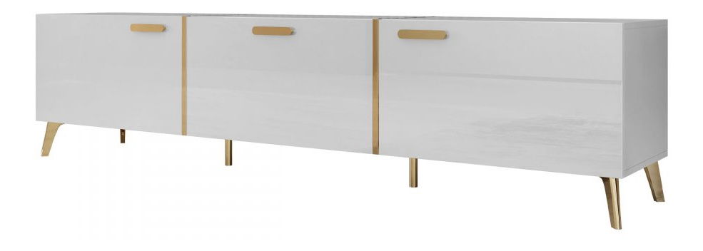 TV skříňka/stolek Rostasi 3D (bílá + bílá lesklá + zlatá)