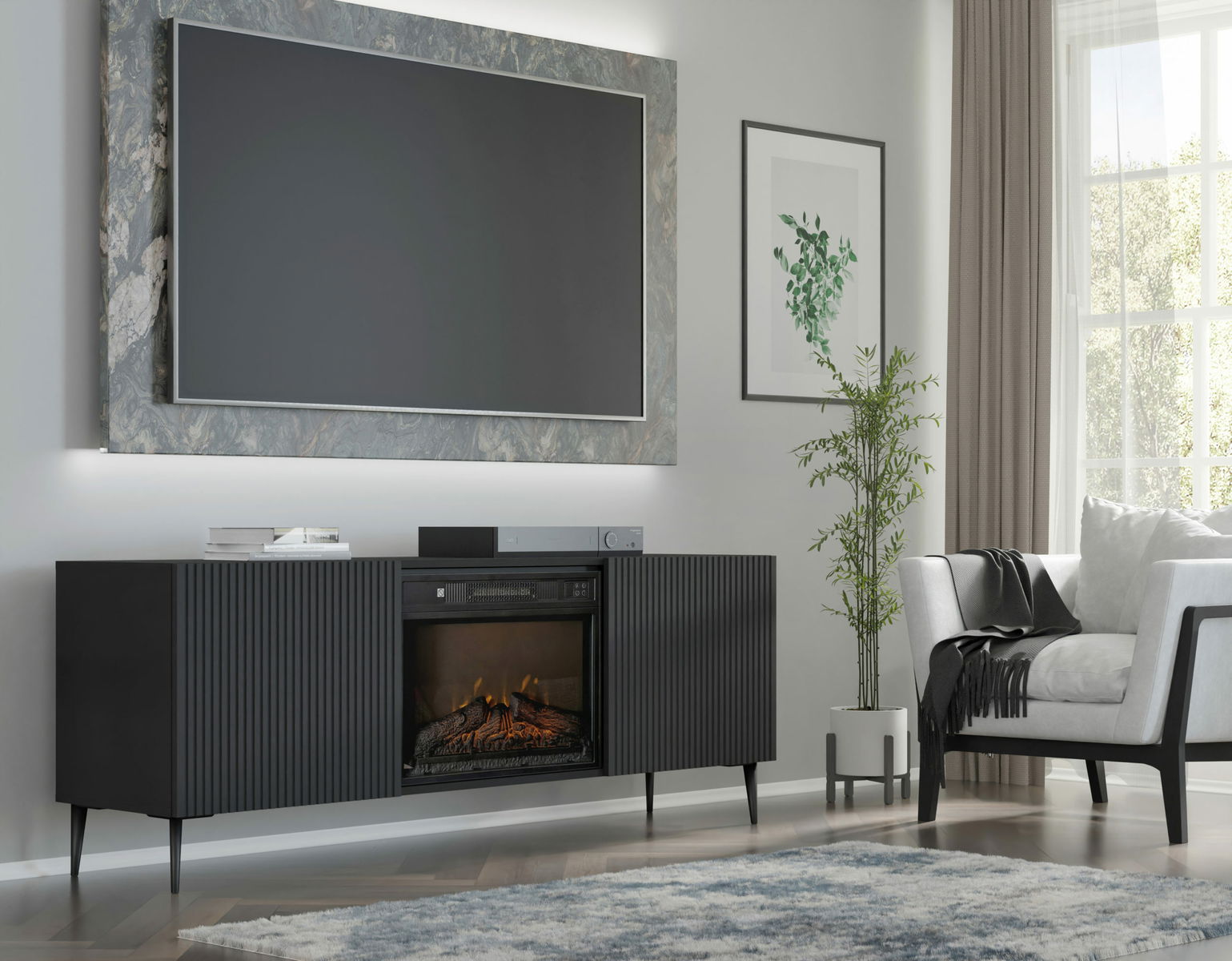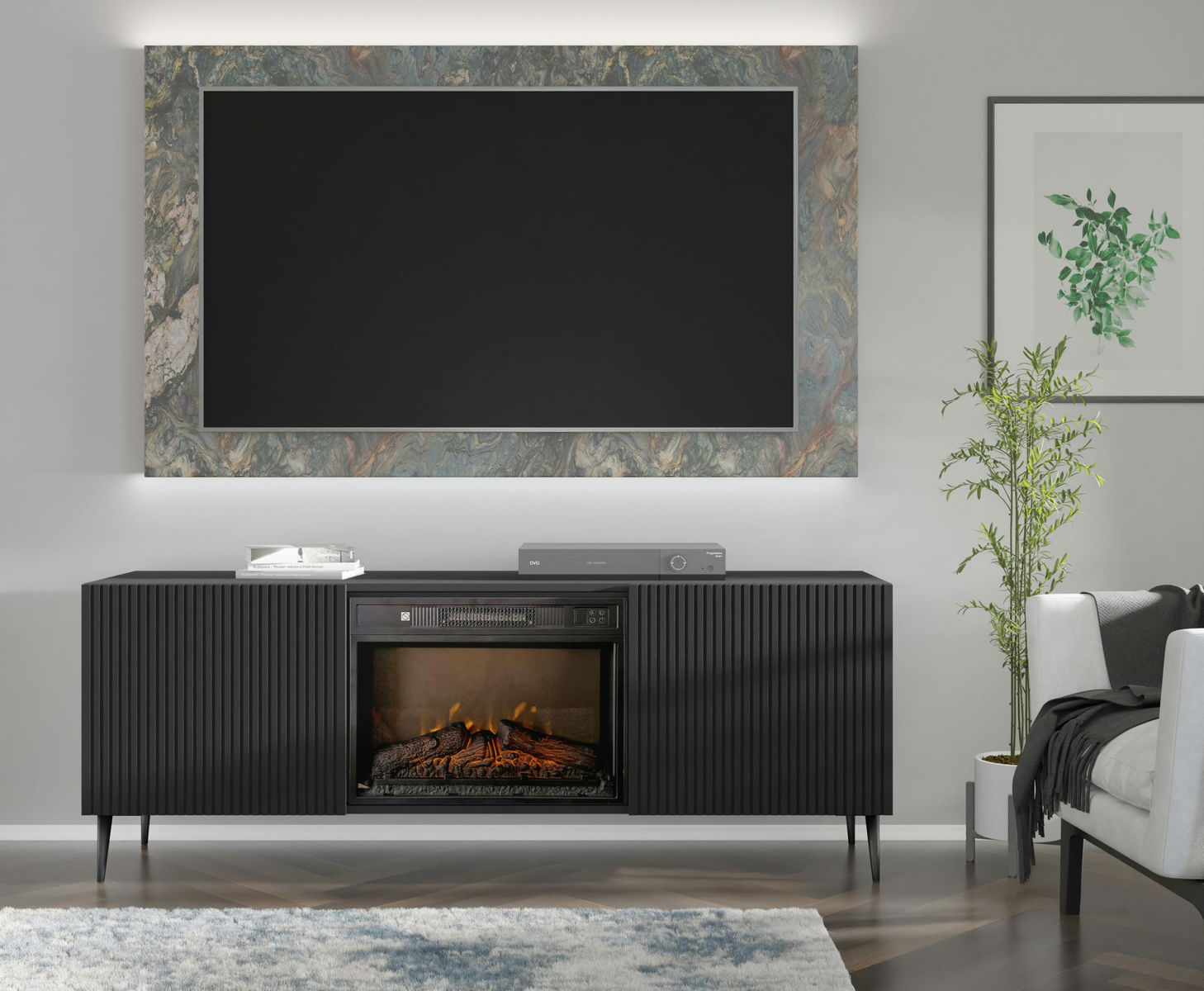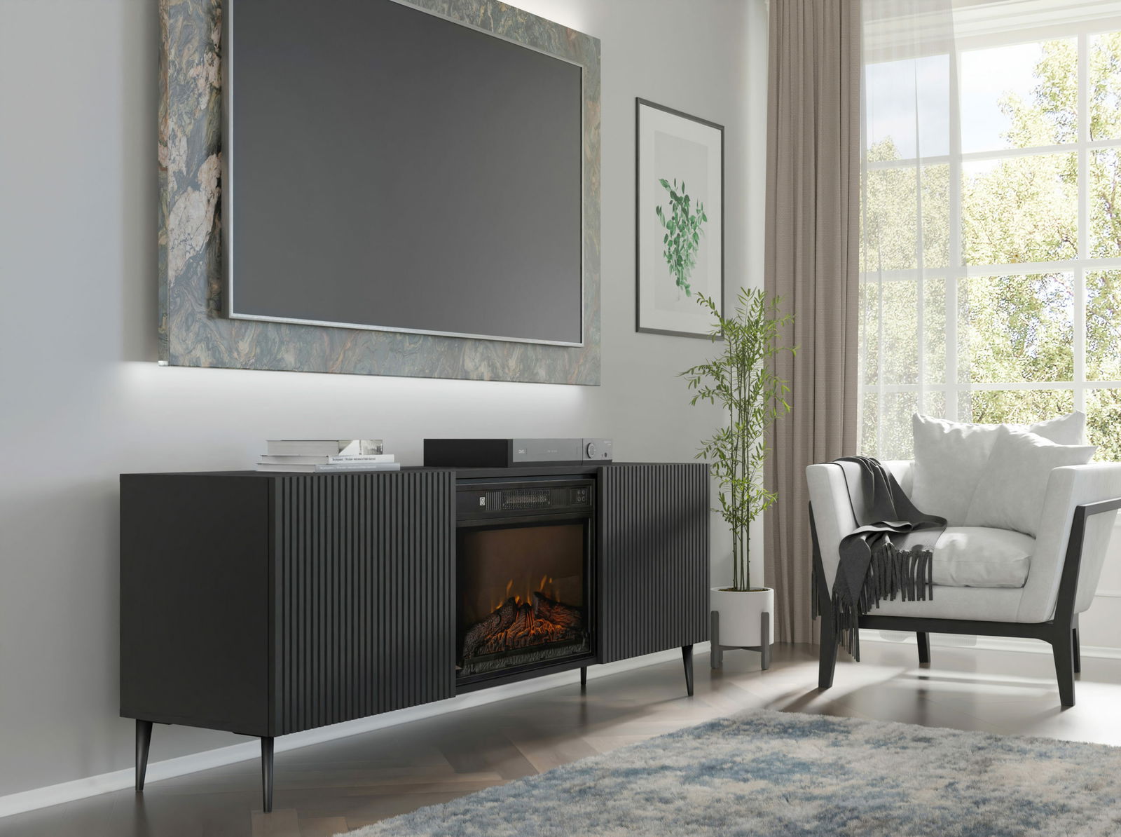 TV skříňka/stolek s elektrickým krbem FPB 2D 170 C Rowanna (černá)