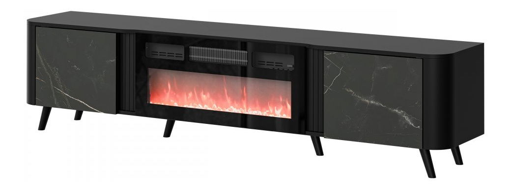 TV skříňka/stolek s elektrickým krbem Newcastle EF (černá + černá san sebastian)