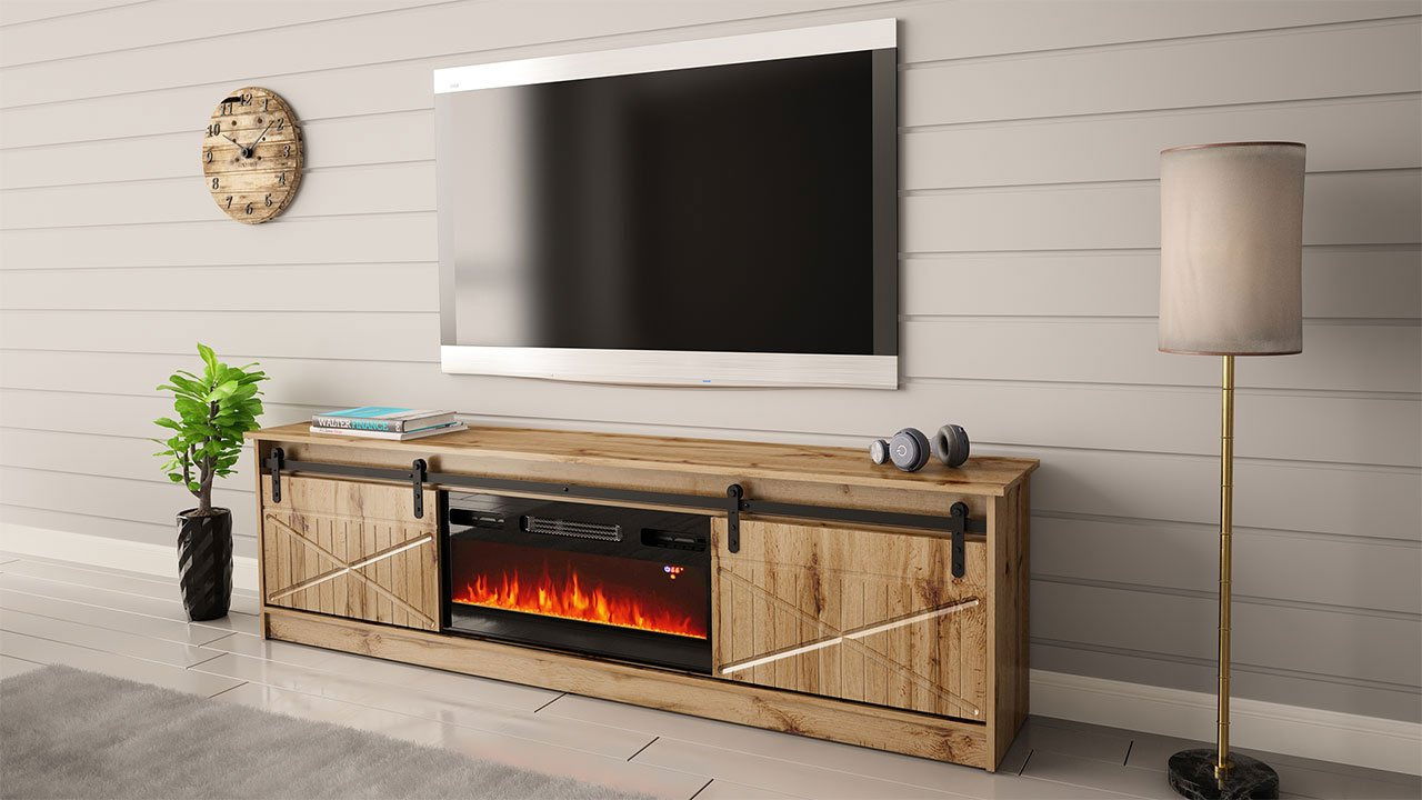 TV skříňka/stolek s elektrickým krbem Selwyn (wotan)