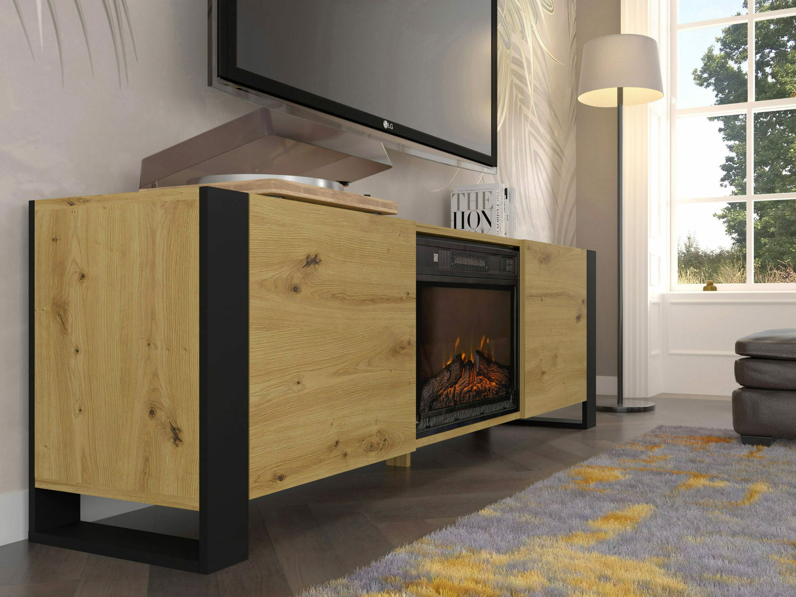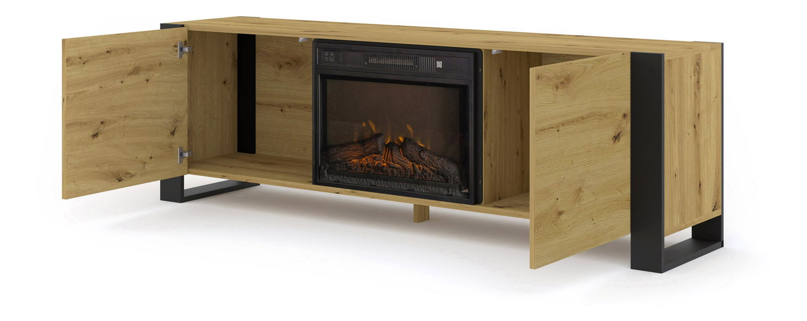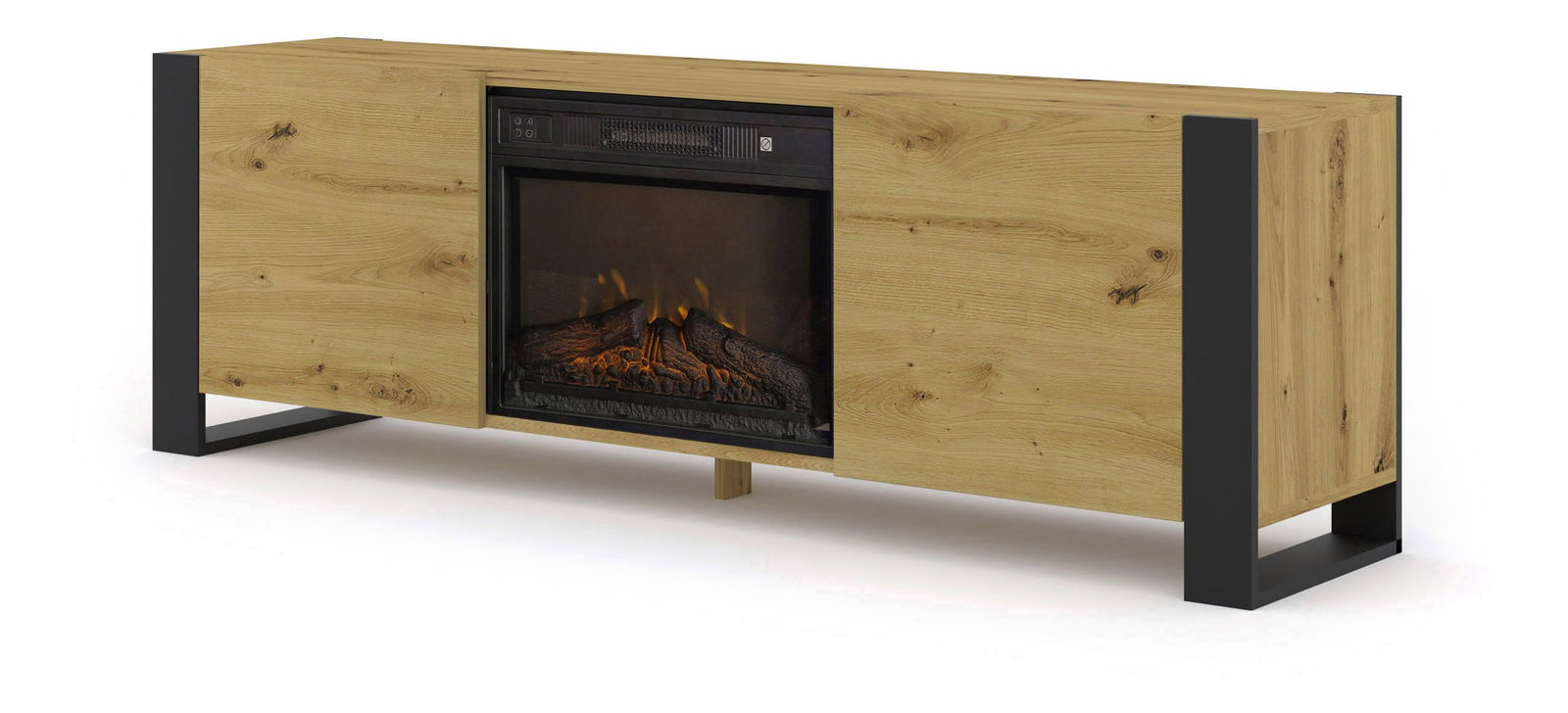 TV skříňka/stolek s krbem Montana (dub artisan + černá)