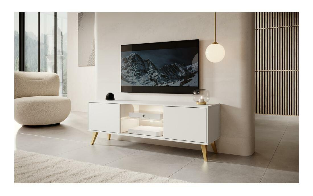 TV skříňka/stolek Savoi II (s osvětlením) (bílá)