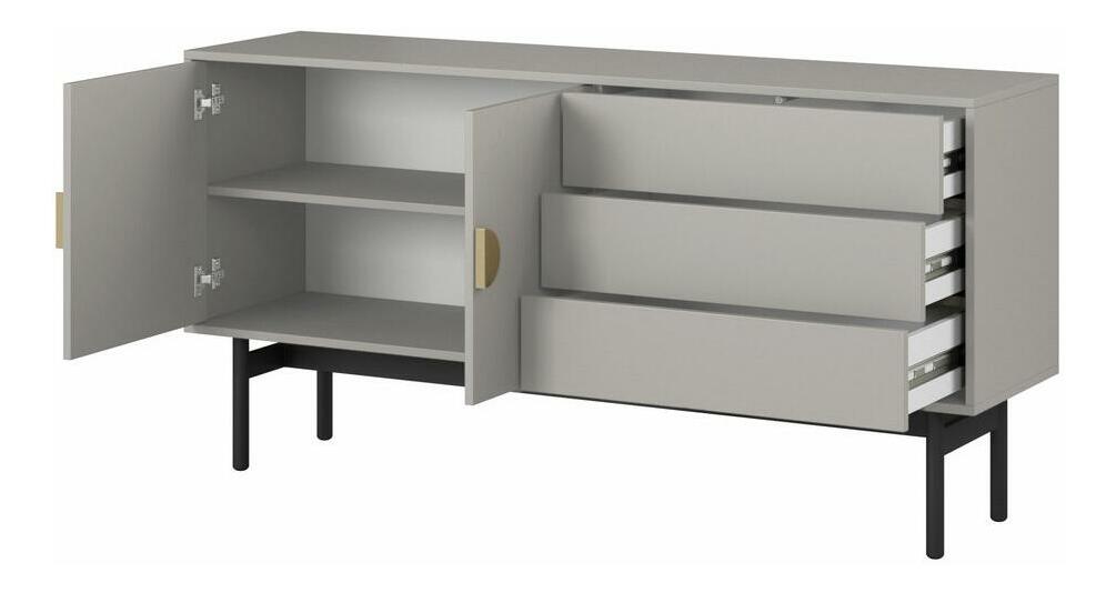 ZobrazitChcete udělat metamorfózu ve svém interiéru? Máte rádi originální řešení a jednoduché formy nábytku? Výběrem naší kolekce vnesete do interiéru harmonii a eleganci a potěšíte své hosty Televizní skříňka s jedinečným designem v elegantní béžové barvě dokonale zapadne do moderních interiérů. Je vyroben z kvalitní laminované dřevotřískové desky, která zajišťuje dlouhodobé a bezproblémové používání. Jeho charakter obohacuje pevný rám vyrobený z oceli, který činí nábytek nejen odolným, ale dodává mu i industriální šarm. Zlaté úchytky tvořící kruh jsou zase nejen praktickým prvkem, který usnadňuje otevírání, ale dodávají celé skříňce eleganci a jemný lesk. Tento malý, ale rafinovaný detail odlišuje nábytek a dodává mu mírně luxusní akcent. Skříňka byla navržena s ohledem na funkčnost, proto má zásuvky na menší předměty a uzavřený výklenek na větší hrací boxy nebo elektronické vybavení. Kombinace nevšední barvy s černým rámem a zlatými úchyty vytváří harmonický a moderní celek, který dokonale zapadne do různých interiérových aranžmá a dodá jim jedinečný charakter. Tato skříňka je nejen praktickým úložným řešením, ale také designovým prvkem, který ozdobí a zdůrazní individuální styl každé místnosti Detaily produktu: korpus a čela vyrobená z laminované desky Grey Taupe U750 ST9, odolná vůči vlhkosti, vysoké teplotě a poškrábání. , rám z černé prášk lakované oceli, která usnadňuje udržování pořádku pod nábytkem, zásuvky otevírané metodou 'push to open', úchyty zlaté barvy z broušené oceli.