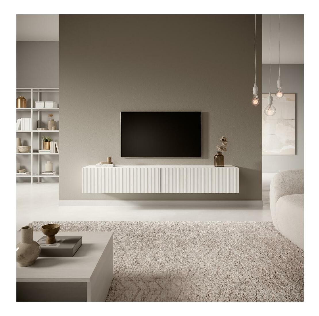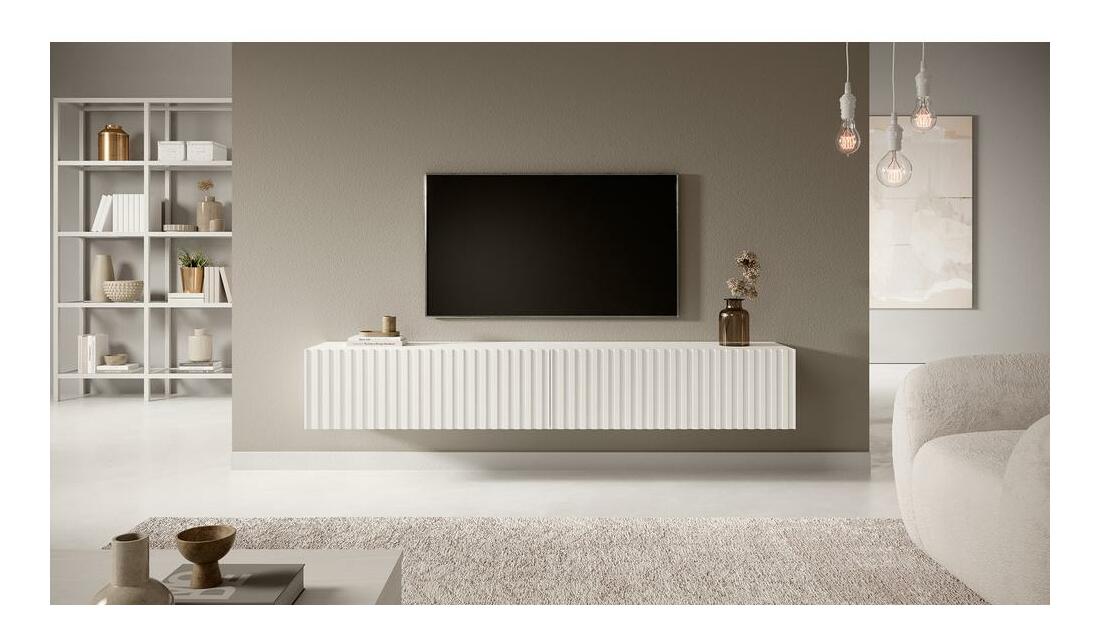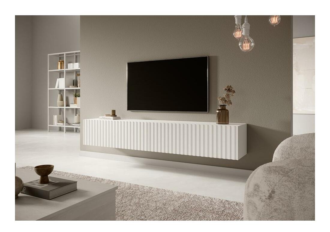 ZobrazitPokud jste fanouškem přírodních a teplých interiérů, TV skříňka určitě neunikne vaší pozornosti! Jeho jedinečná forma v kombinaci s funkčností je hitem při zařizování útulné a ergonomické místnosti TV skříňka se určitě stane výkladní skříní vašeho obývacího pokoje. Hodí se do modernistického i průmyslového uspořádání. Nejvíce však zapadne do přírodních interiérů zařízených v boho nebo botanickém stylu. V kombinaci s květinami a přírodními barvami bude působit velmi styl a aranžmá se stane atmosférickým a útulným – ideální pro relax po náročném dni v práci. Půvab celku dodává frézovaná přední strana, která opticky obohacuje jednoduchý tvar. Vnitřek je rozdělen do dvou prostorných skříněk, do kterých se úspěšně vejde jak příslušenství RTV, tak důležité dokumenty, které musíte mít vždy po ruce. Chcete-li pokoj personalizovat, důležité rodinné suvenýry či fotografie si nepochybně najdou své místo na široké desce skříně. Detail produktu: korpus skříně je vyroben z 16 mm laminované desky, která je odolná vůči vlhkosti a poškrábání, což zajišťuje dlouhé používání. , lamely z MDF, čela skříněk otevíraná směrem dolů, šířka nábytku: 175 cm, barva: bílá.