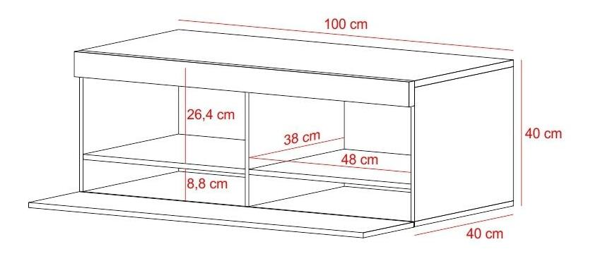 Zařizujete si obývací pokoj a hledáte stylový TV stolek? Televizní skříňka bude hitem! Konstrukce je vyrobena z kvalitní laminované desky (čela 18 mm a korpus 16 mm), což zaručuje odolnost, díky které vám nábytek vydrží léta. Čelo skříně je dle zvolené barevné varianty provedeno v lesku nebo matném provedení. Nábytek je vybaven čtyřmi výklenky, dvěma uzavřenými a dvěma otevřenými, které vám umožní umístit veškeré vaše televizní vybavení. Skříň má LED osvětlení - dvoubodová, modrá světla na baterie. Udělejte osvěžující změnu ve svém obývacím pokoji s RTV ještě dnes! Sada neobsahuje montážní prvky na zeď.