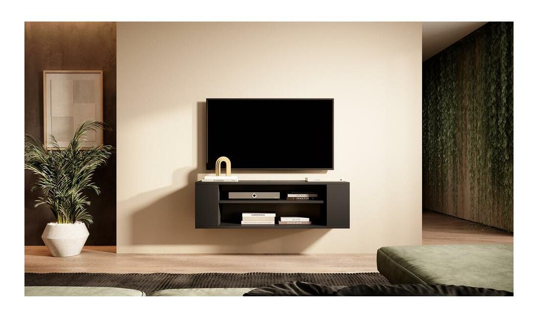 Pro nepořádek v obýváku máte pocit, že se vám nechce relaxovat? Už vás nebaví nikdy najít dálkové ovládání televizoru, když jej potřebujete? Řekněte dost nepořádku v sedacím koutě s naší kolekcí TV skříněk! Nic vás neodradí od odpočinku v obýváku více než nevzhledný multimediální koutek: kabely táhnoucí se po celé místnosti, dálkové ovladače ztracené v akci, chybějící krabice s hrami či filmy. Naštěstí pro vás máme něco, co vám pomůže efektivně se zbavit všech těchto typů problémů a ve vaší domácnosti bude navždy elektronicky pořádek! Krásná TV nástěnná skříňka se postará o to, že váš obývací pokoj konečně začne oslňovat a vy a vaši blízcí si v ní opravdu užijete čas! Nábytek, který představujeme, má podobu minimalistického kvádru vybaveného dvěma otevřenými policemi uprostřed a praktickými přihrádkami po stranách. Nedostatek stěn umožňuje nejen volný průchod kabelů, ale umožňuje také správnou cirkulaci vzduchu, která chrání citlivé systémy vašich zařízení před poškozením v důsledku přehřátí. Navíc budete mít rychlý a snadný přístup k zařízením umístěným uvnitř, jako je například konzola nebo dekodér, nebo příslušenství, jako jsou nabíječky, kabely, dálkové ovladače ukryté v košících, díky čemuž je příprava na sledování filmu nebo hraní oblíbené hry mnohem příjemnější. Konstrukce je zakončena prostornou hladkou deskou, na kterou můžete pohodlně umístit televizor nebo monitor nebo, pokud si přijímač zavěsíte na zeď, pěkně vystavit doplňky a dekorace. Detaily produktu: 100 cm široká verze, nábytek lze zavěsit na zeď, na výběr tři módní barvy - černá, bílá, dub Wotan - které usnadňují sladění nábytku do interiéru a vytvářejí atraktivní dekor,