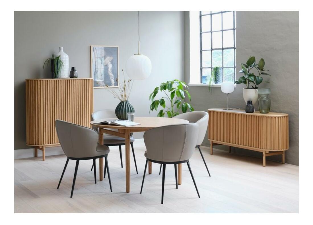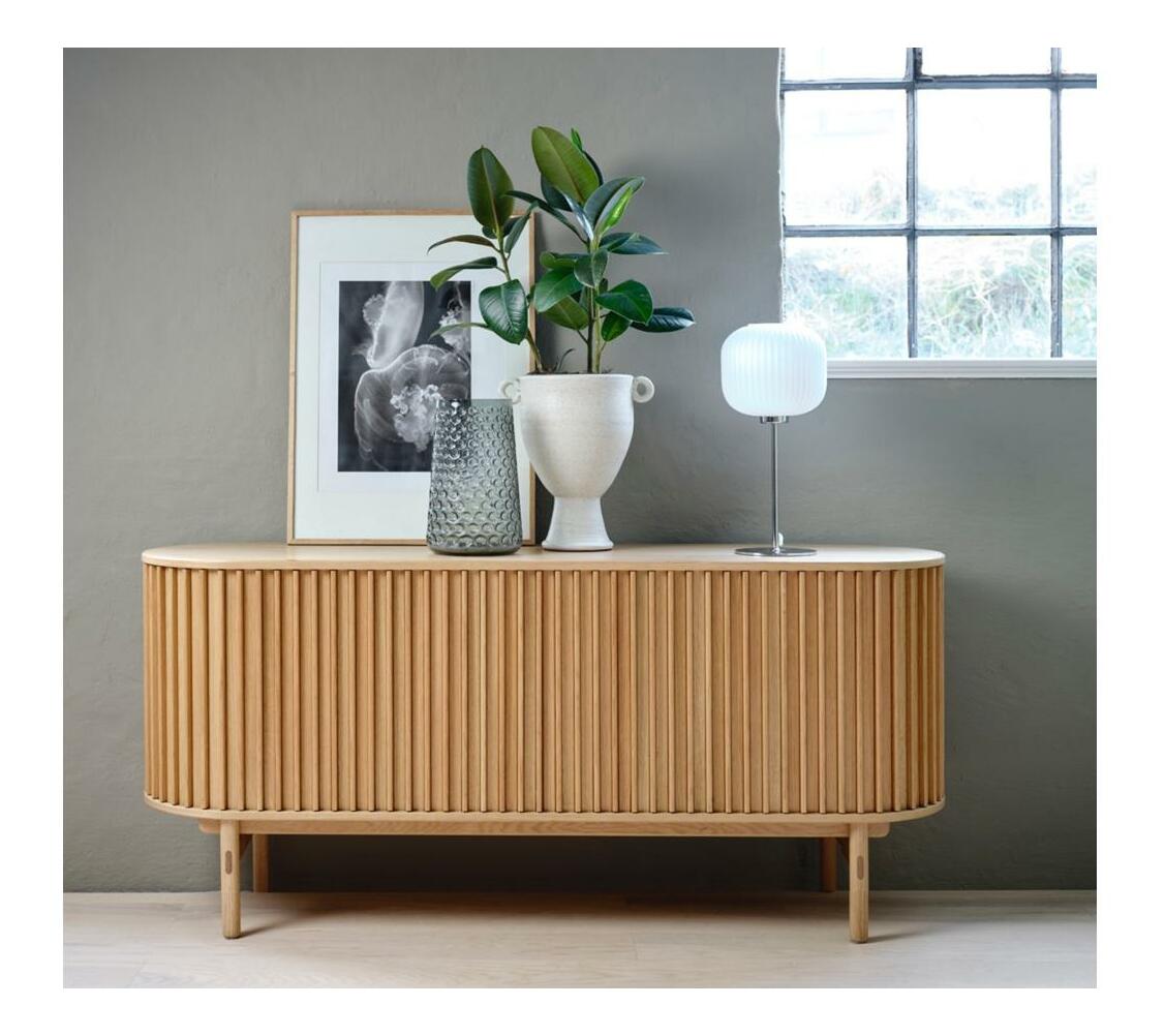 ZobrazitOceňujete minimalistický styl plný kreativních řešení? Potom byla kolekce nábytku navržena s ohledem na vás! Široká komoda je receptem na estetický prostor. Díky svému dekorativnímu, ale vizuálně výjimečně lehkému tvaru se tento kus nábytku perfektně hodí prakticky do každé místnosti vašeho bytu – od předsíně, přes obývací pokoj až po ložnici – což vám umožní efektivně si je uspořádat. To vše díky prostorným přihrádkám a zásuvce ukryté za posuvnými dvířky, do kterých se spolu vejde široká škála různých předmětů: od většího, poskládaného oblečení, přes boxy s dětskými hračkami, až po maličké kancelářské doplňky. Komoda má také prostorný hladký vrch, ideální pro umístění různých dekorací nebo ozdob. vázy s čerstvou kyticí květin. se může pochlubit přírodními barvami a přední částí pokrytou drážkami, oblíbenými tuto sezónu. Dokonale proto zapadne do moderních stylů interiéru, zvláště pokud se vyznačují pestrými barvami a rostlinnými motivy. Podrobnosti o produktu: nábytek je vyroben z desky pokryté dubu dýhou, přírodní materiál s vysokou životností, odolností proti zkreslení a krásným vzhledem, povrch je pokryt ozdobnými drážkami, drážky jsou podélné, úzké drážky malé šířky a hloubky, které probíhají paralelně vedle sebe, rovné nohy zajišťují vysokou stabilitu, zaoblené nohy chrání podlahu před poškrábáním, za posuvnými dvířky je šikovná zásuvka a prostorné výklenky, barva: přírodní dub.