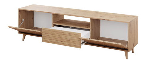 Neutrální charakter TV skříňky Treksona 2K1SZ dobře ladí se skandinávským interiérovým designem. Barevné schéma inspirované přírodou je také dokonalým doplňkem moderního obývacího pokoje nebo obývacího pokoje v moderním organickém stylu. Jednoduchost nábytku podtrhují jeho geometrické tvary, zatímco symetrické drážky na čelech mu dodávají šarm. Ceněnou vlastností TV skříňky je také prostorný úložný prostor. Výklopné skříňky v kombinaci se zásuvkou a policí vystaví televizní zařízení. Své místo si zde najde také příslušenství pro hráče a domácí sbírky milovníků hudby.