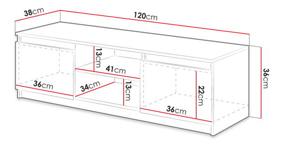 ZobrazitTV skříňka Zekazo má univerzální tvar a zajímavé barvy. Bude se hodit do obývacího pokoje a ložnice. Je ideální pro vytvoření atmosférického televizního koutku ve vaší domácnosti. Tento model má prostorné police. Dvě z nich jsou ukryty za dveřmi, zatímco ostatní jsou ideálním místem pro multimediální zařízení, stolní hry nebo malé dekorace. Chybějící úchyty jí dodávají moderní charakter. TV skříňka Zekazo se vyznačuje zajímavými barevnými kombinacemi. To vám umožní sladit ji s mnoha aranžmá.