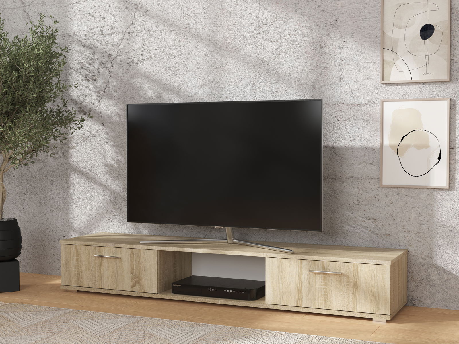 ZobrazitTV stolek Aris (dub sonoma) o výšce 28 cm a hloubce 40 cm je moderním nábytkem, který dokonale sedne pod vaši televizi. Jeho nižší a širší provedení dodává místnosti moderní vzhled a jeho praktické využití ocení každý majitel. Stolek je vyroben z 16 mm silné laminované desky se zakončením ABS dýhou. Rukojeti jsou z plastu a otevírání je sklopné. Rozměry balíku 1 jsou 45x8x180 cm a váží 23 kg. S tímto stolkem si můžete vychutnat váš oblíbený seriál nebo film v pohodlí vašeho domova a zároveň si vychutnat jeho moderní design.