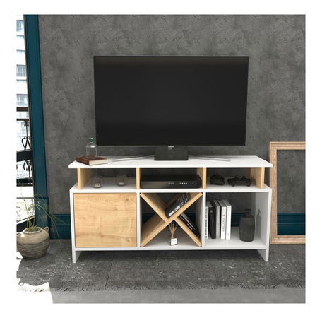TV stolek Aubarna (bílá + dub)