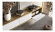 Vrchní deska laminátová nábytková deska 22 mm, Korpus a ostatní - laminátová nábytková deska 15 mm, ABS hrany.