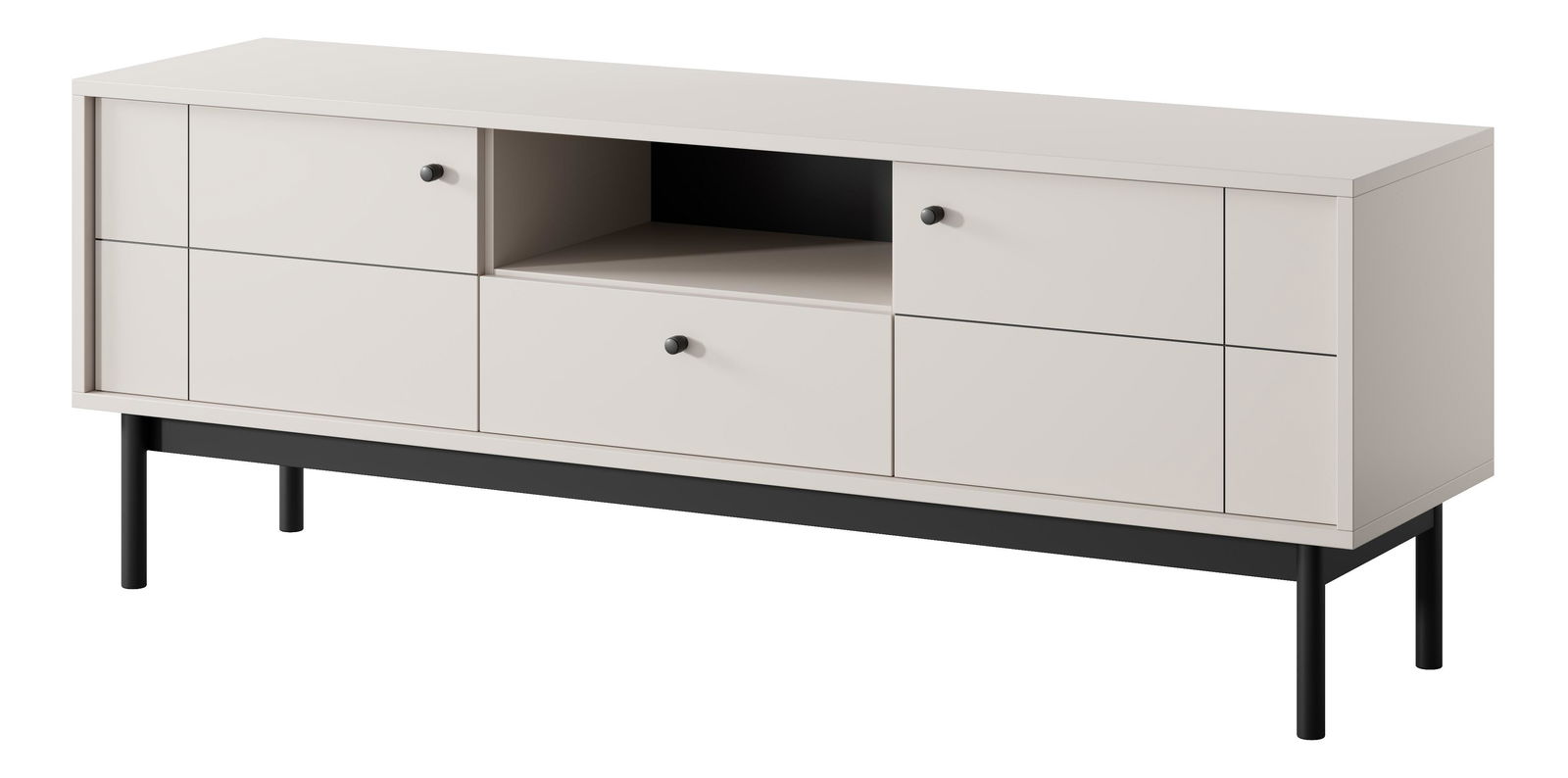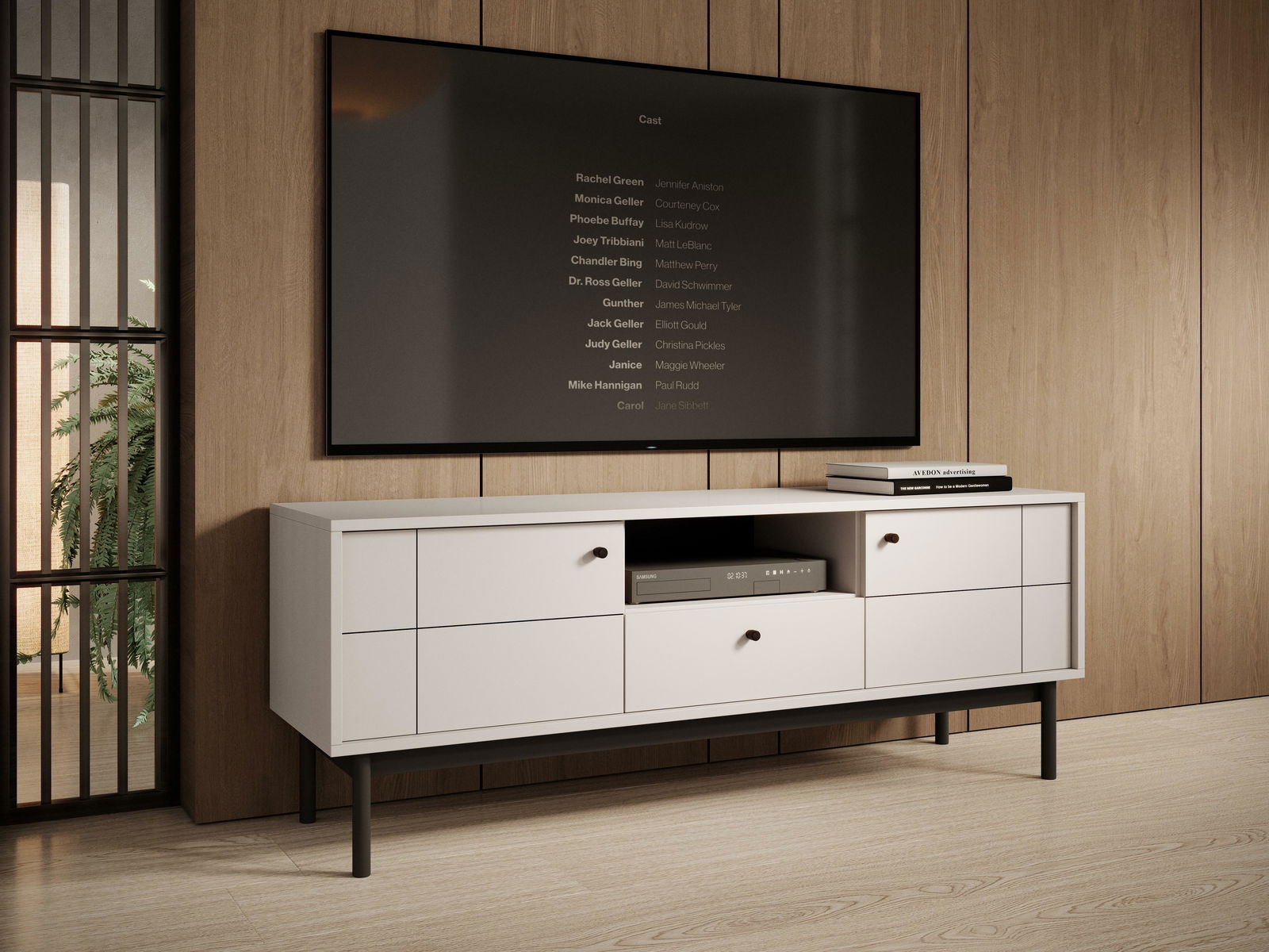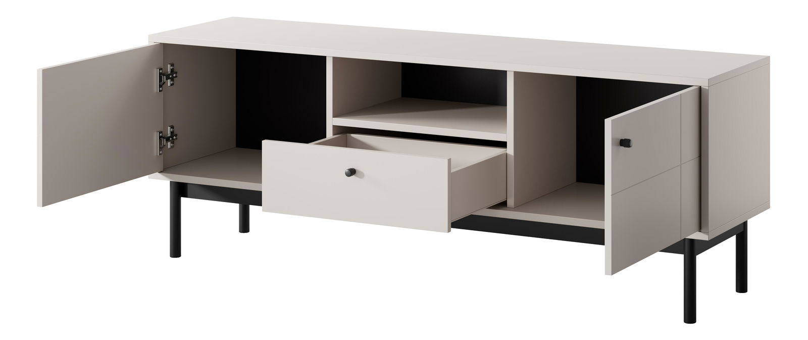 ZobrazitTV stolek Japandan je ideálním doplňkem do moderního obývacího pokoje, kde skvěle poslouží jako praktické a stylové úložné řešení. Vyroben z laminované ABS desky o tloušťce 16 mm, je odolný a připravený vydržet každodenní používání. Stolek má dřevěné nožičky v černé barvě, které zajišťují stabilitu, a kovové úchyty také v černé barvě, které dodávají stolku elegantní vzhled. Se dvěma dvířky a jednou zásuvkou poskytuje dostatek úložného prostoru pro elektroniku, příslušenství a další předměty. Produkt je balen v kompaktním balíku o rozměrech 169 x 45 x 10 cm a váží 33 kg, což usnadňuje přepravu a montáž.