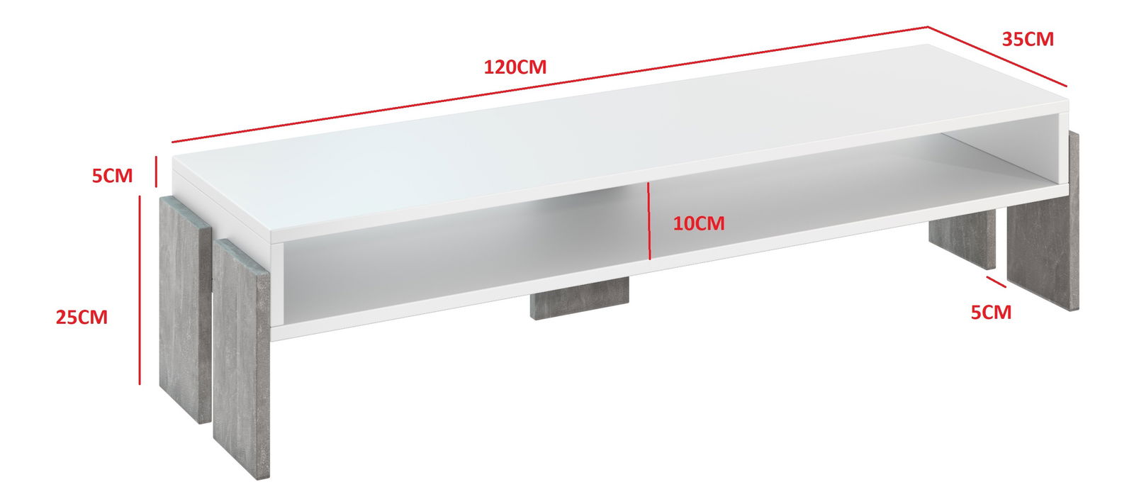 ZobrazitTV stolek Ramea (bílá + kámen) je moderní nábytek pro váš obývací prostor. S jeho výškou 30 cm, šířkou 120 cm a hloubkou 35 cm dokáže držet větší televizory a má dostatek místa pro vaši zábavu. Bílá barva spolu s kamenem dávají tomuto stolku elegantní a vkusný vzhled, který bude skvěle zapadat do vaší domácnosti. Materiál ze kterého je vyroben je kvalitní a odolný, takže vám bude sloužit na dlouhá léta. S TV stolkem Ramea můžete užívat své oblíbené filmy a seriály v pohodlí vašeho obývacího pokoje.
