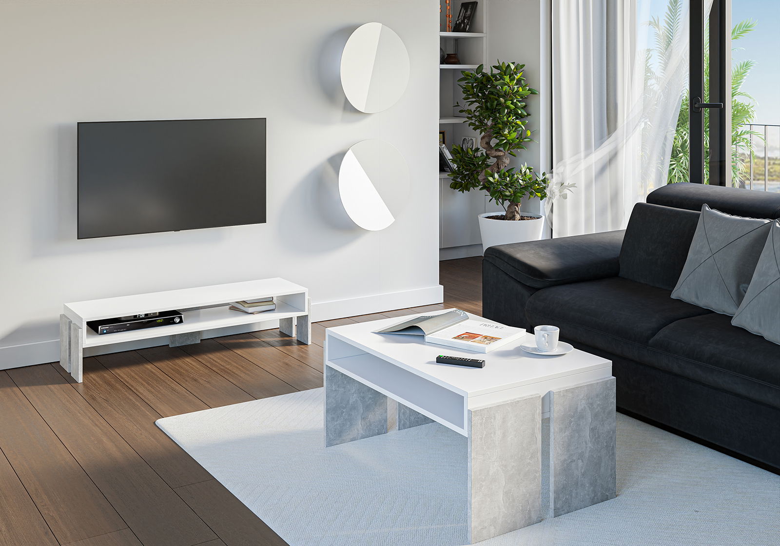 TV stolek Ramea (bílá + kámen)