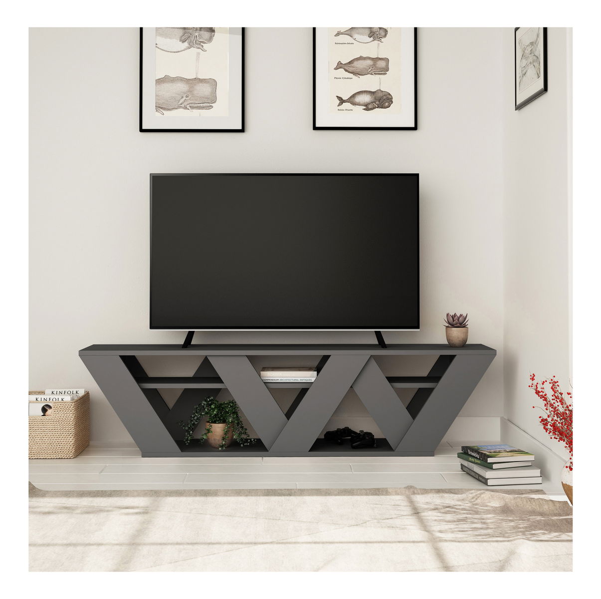 TV stolek Roderick (antracit) je praktickým a elegantním doplňkem pro váš obývací prostor. S výškou 40 cm, šířkou 158 cm a hloubkou 30 cm poskytuje dostatek místa pro váš televizor a ostatní zařízení. Díky svému antracitovému odstínu se perfektně hodí k modernímu nábytku. Stolek je vyroben z kvalitních materiálů, což zaručuje jeho dlouhou životnost a odolnost vůči poškození. S tímto TV stolkem získáte nejen praktickou úložnou plochu, ale také elegantní a vkusný kousek nábytku, který pomůže vytvořit stylovou atmosféru ve vašem obývacím pokoji. Nechte se okouzlit jeho funkčností a moderním designem!