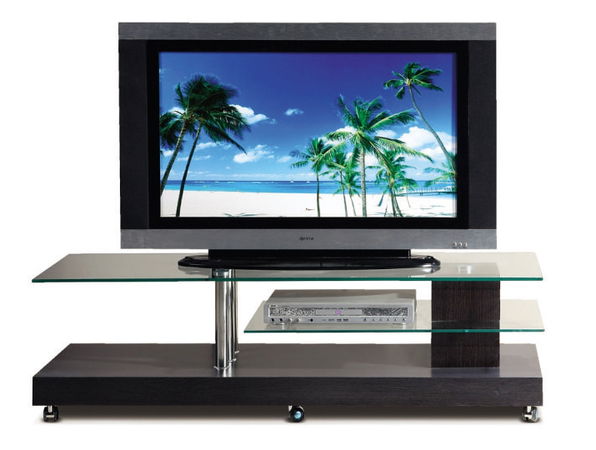 Moderní TV stolek je postaven na praktických kolečkách a tak ho v případě potřeby můžete jednoduše přemisťovat v prostoru. Podstava je vyrobena z MDF v barvě wenge, nad kterou jsou dvě úrovně skleněných poliček. Ty podpírá i nožička v barvě chromu.