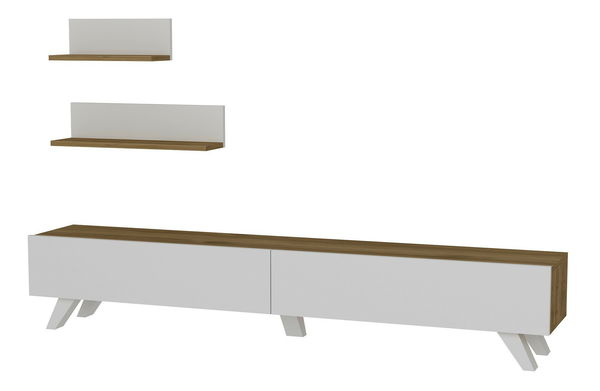 TV stolek/skříňka Ameria je moderní nábytek, který umožňuje pohodlné uspořádání vašeho domácího kina. Vysoká kvalita 100% melaminové desky zaručuje dlouhou životnost a odolnost proti poškození. S tímto stolkem budete mít dostatek místa pro televizi, zařízení a další doplňky. S jeho bílo-ořechovým designem se dokonale hodí k jakémukoli interiéru. Jeho rozměry jsou ideální pro menší obývací pokoj, o výšce 14,5 cm, šířce 60 cm a hloubce 14,5 cm. TV stolek/skříňka Ameria je dokonalým doplňkem vašeho obývacího prostoru, který vám umožní vychutnat si pohodlné sledování filmů a televizních pořadů.