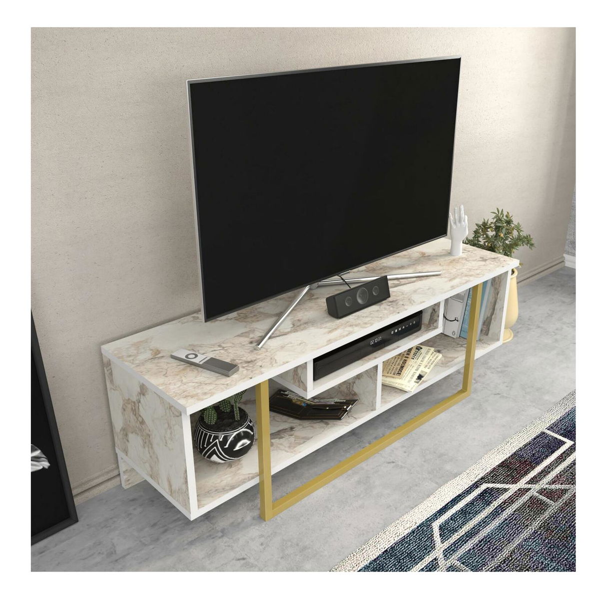 TV stolek/skříňka Aslana 120 (bílá + zlatá)