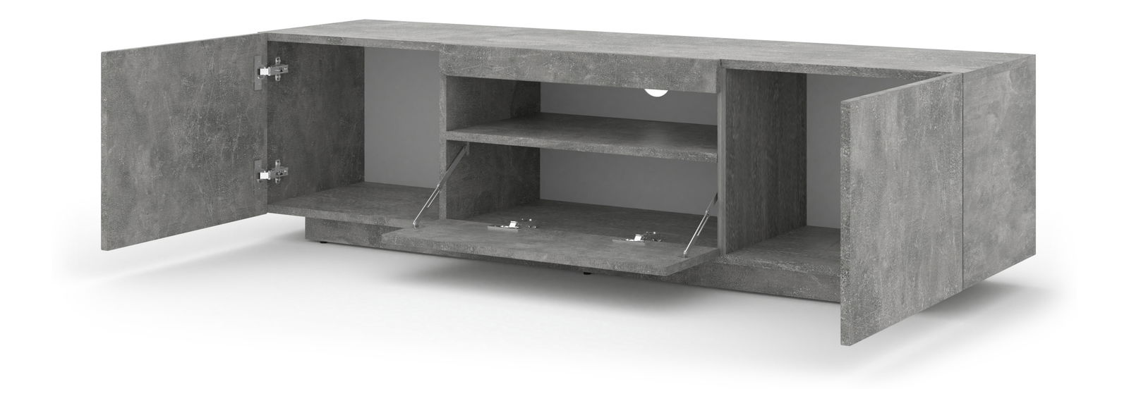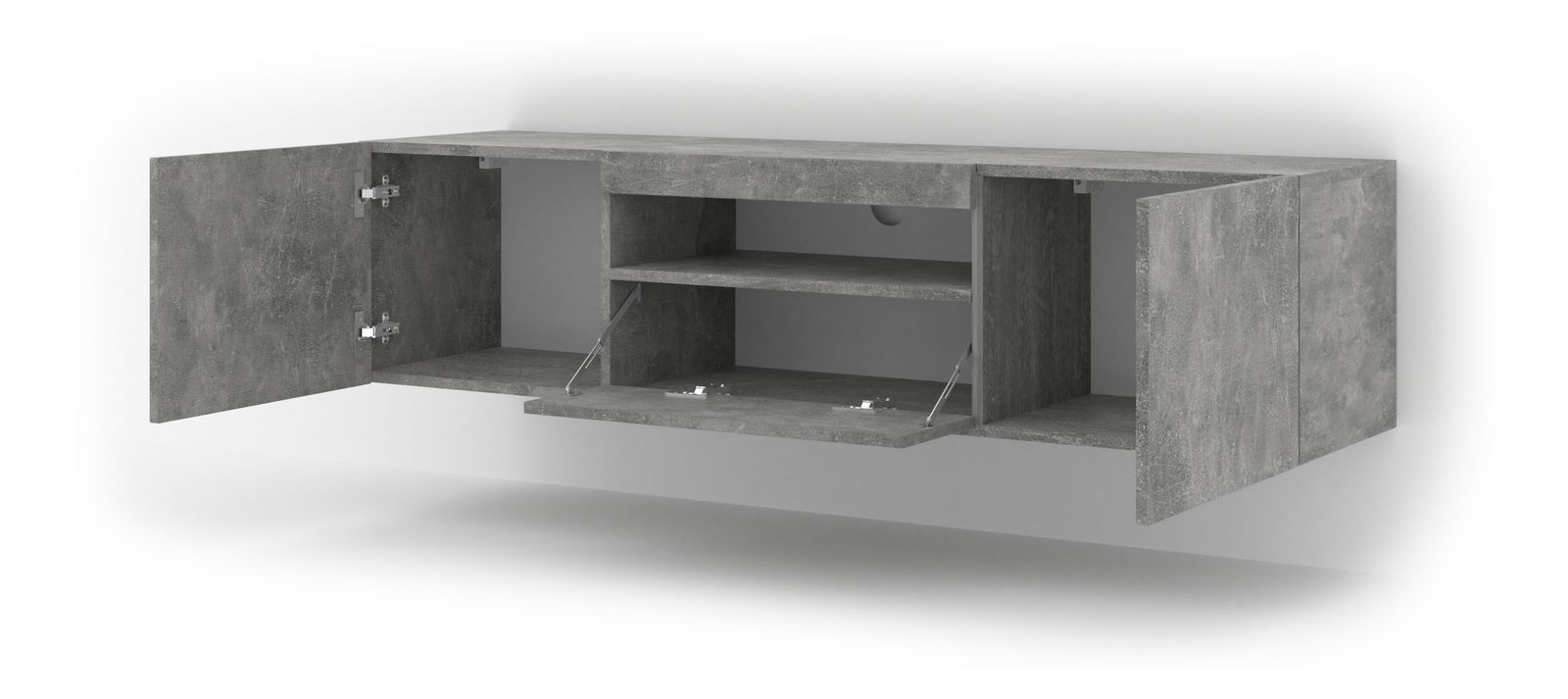 Univerzální TV stolek/skříňka je ideální do obývacího pokoje nebo teenagerského pokoje. Lze jej zavěsit na zeď nebo mít jako stojící (má sokly, které lze volitelně namontovat). Vyroben je v moderním stylu. Má jednu otevřenou polici, kde je místo pro vaše set-top boxy, hrací konzole a jiné příslušenství. Disponuje třemi uzamykatelnými skříňkami ze kterých se dvě otevírají do stran a jedna je výklopná.