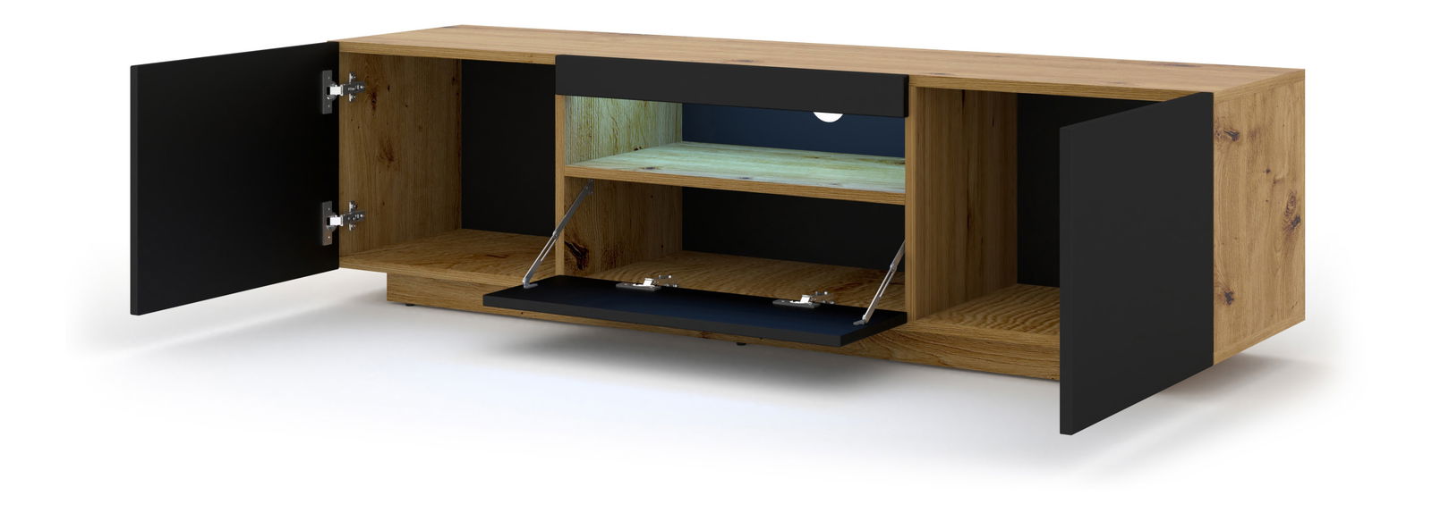 TV stolek/skříňka Aurinko 150 (dub artisan + matná černá) (s osvětlením)