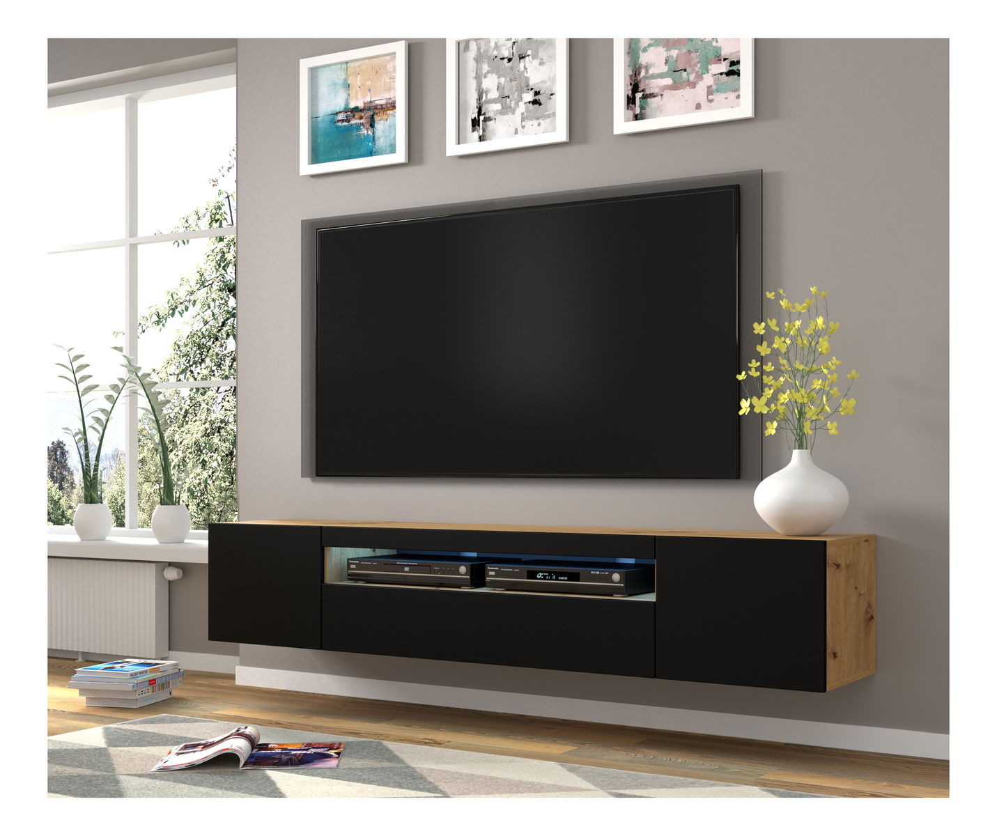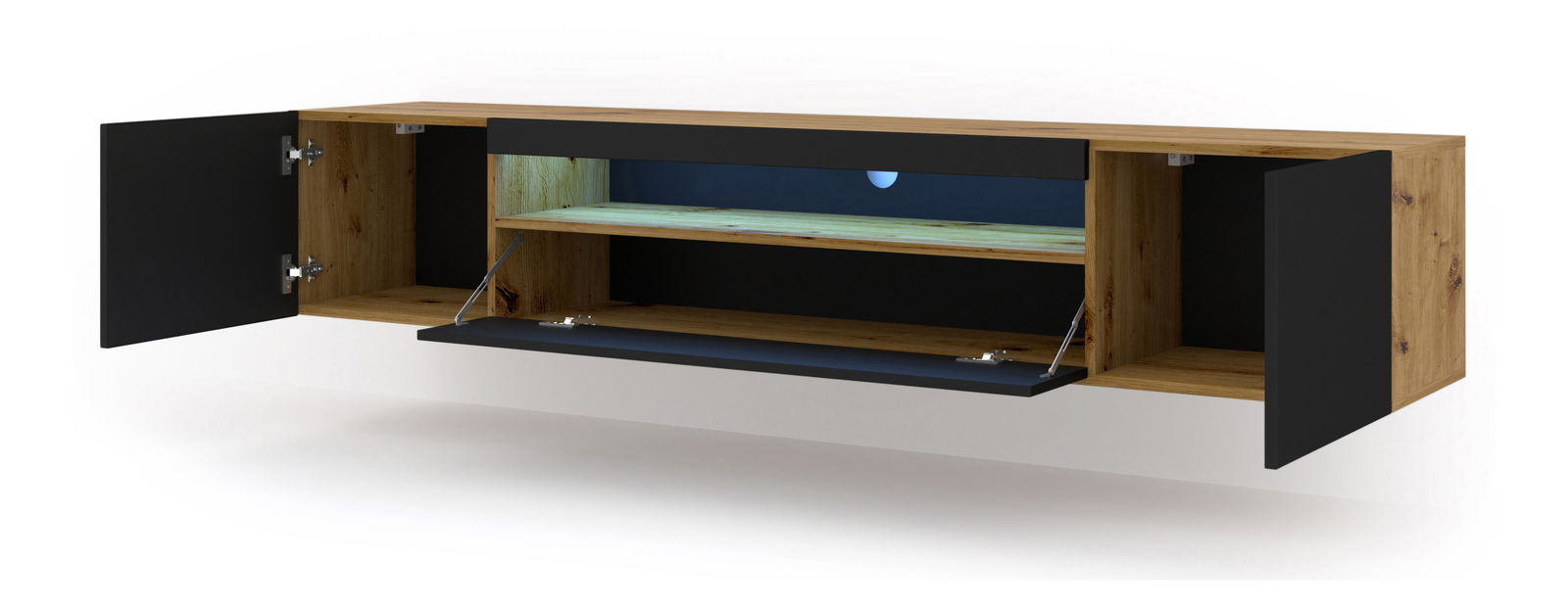 TV stolek/skříňka Aurinko 200 (dub artisan + matná černá) (s osvětlením)