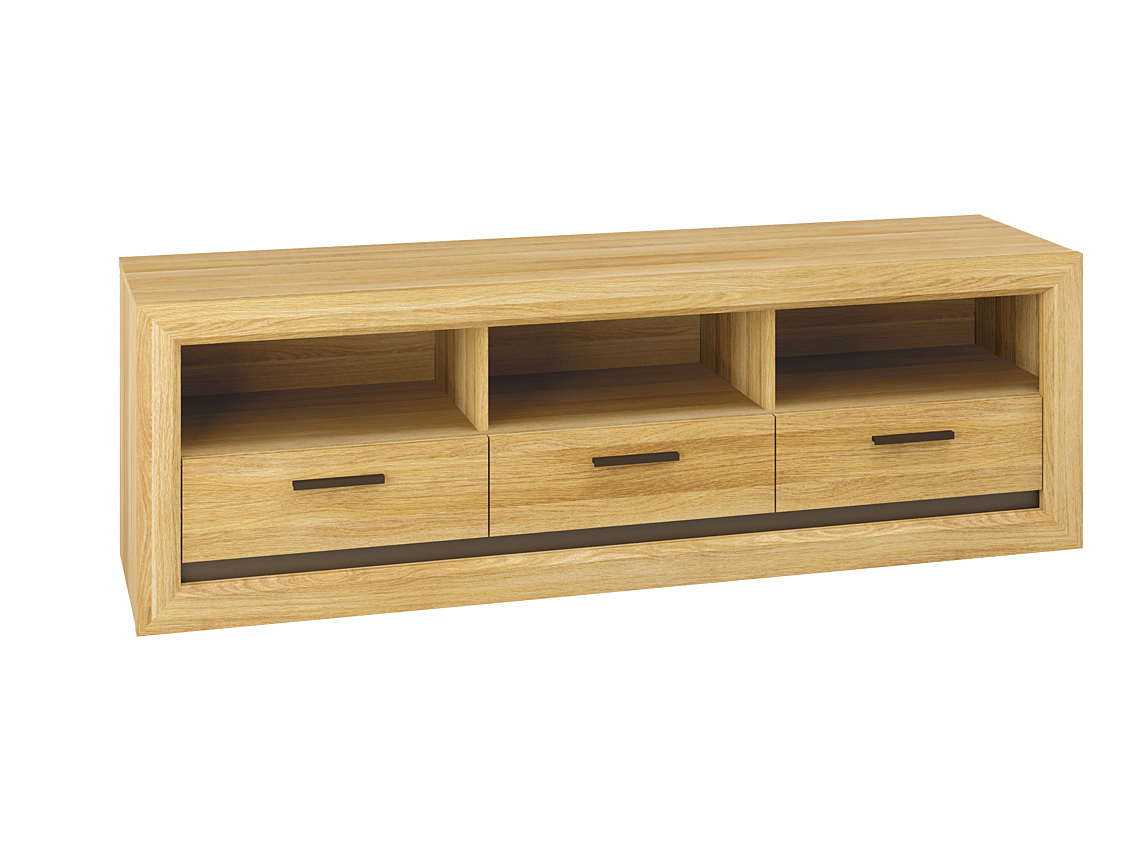 Televizní stolek v moderním stylu se třemi zásuvkami a prostorem pro audio. Barva amerického dubu přináší svěžest do každého interiéru, takže je určen pro osoby které ocení eleganci, přirozenost a jednoduchost. Dodává se v demontu.