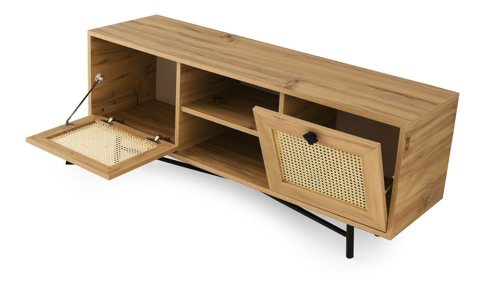 TV stolek/skříňka - Bego výška 60 cm šířka 140 cm Dub + Černá hloubka 40 cm Materiál: 100% melaminová deska Tento TV stolek/skříňka Bego je ideálním řešením pro váš obývací prostor. S výškou 60 cm, šířkou 140 cm a hloubkou 40 cm poskytuje dostatek místa pro vaše televizní zařízení a další příslušenství. Výroben z kvalitní 100% melaminové desky, tento stolek/skříňka je odolný a trvanlivý. Jeho moderní design v kombinaci dubové a černé barvy přidává styl a eleganci do vašeho interiéru. Nechte se okouzlit funkčností a estetikou tohoto TV stolku/skříňky Bego.