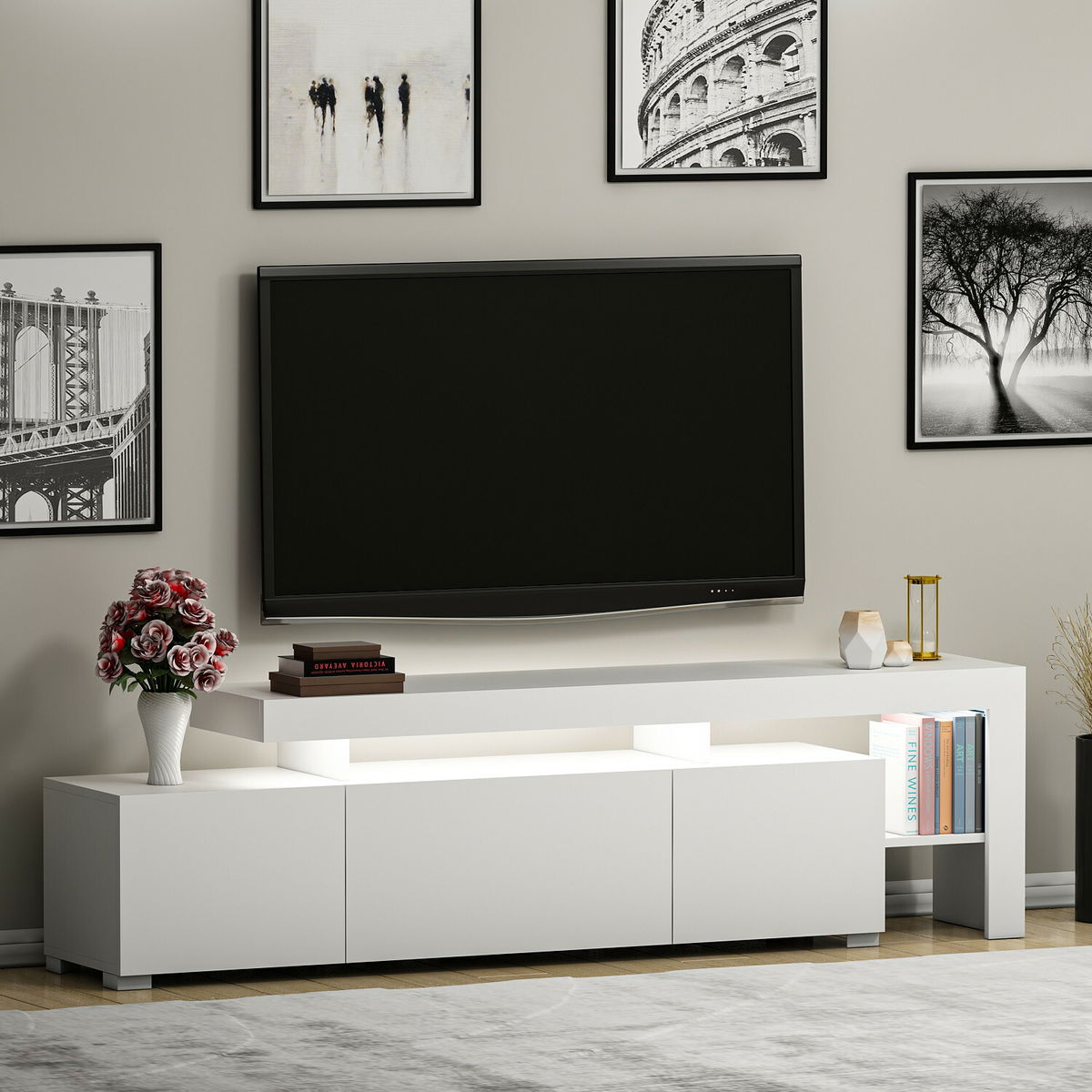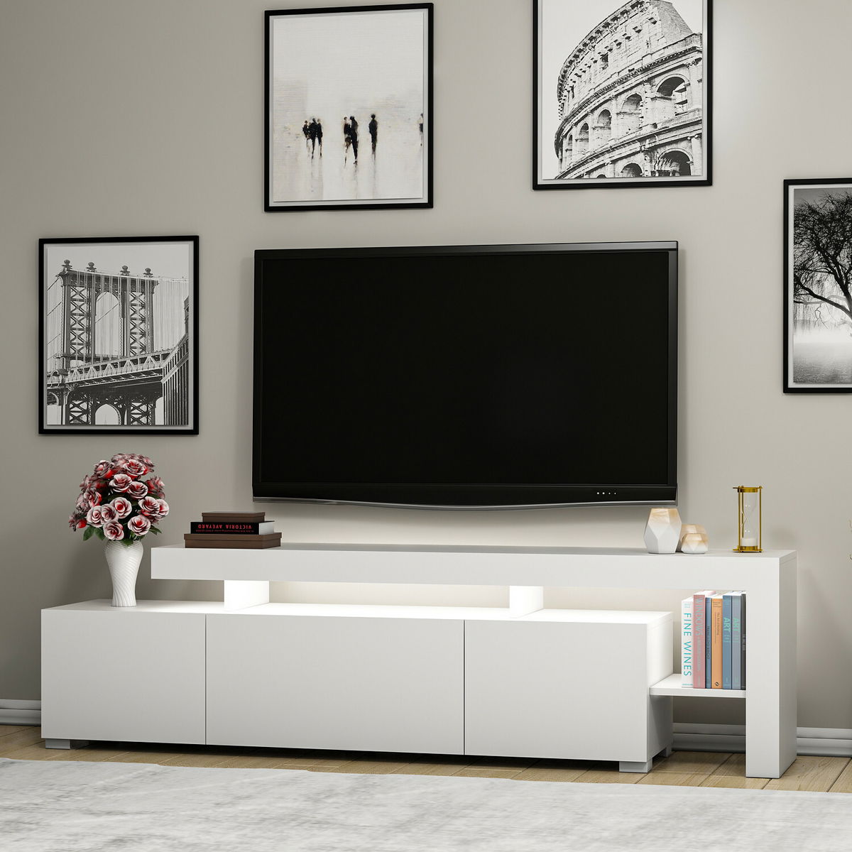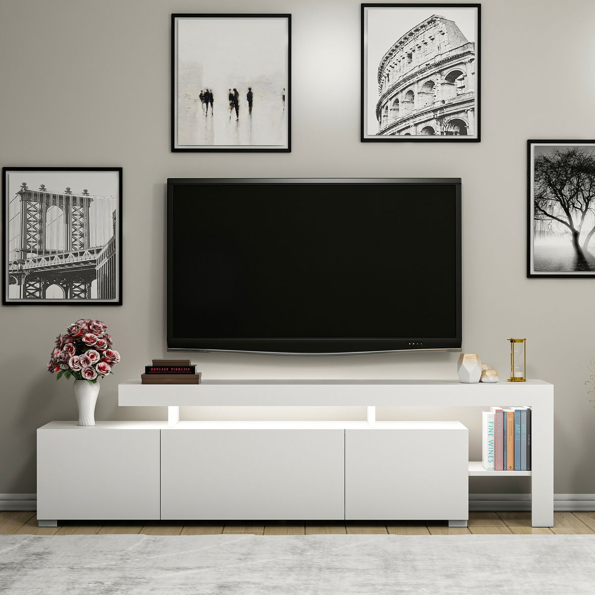 TV stolek/skříňka - Belize (Bílá) je praktický nábytek, který Vám poskytne dokonalé řešení pro Vaši televizní sestavu. S výškou 53 cm, šířkou 192 cm a hloubkou 37 cm poskytuje dostatek místa pro umístění televize, audiovizuálního zařízení a dalších doplňků. Jeho bílá barva dodává interiéru moderní a elegantní vzhled. TV stolek/skříňka - Belize je vyroben z kvalitních materiálů, které zaručují dlouhou životnost a odolnost vůči každodennímu opotřebení. Se svými praktickými úložnými prostory umožňuje skladování a uspořádání Vašich oblíbených filmů, knih či herních konzolí. S tímto nábytkem si vytvoříte útulné a pořádané místo pro své zábavné a relaxační chvíle.