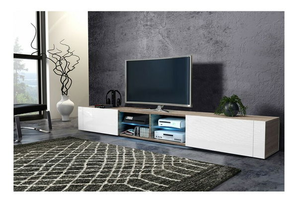 TV stolek/skříňka Best dvojitý (sonoma světlá + lesk bílý)