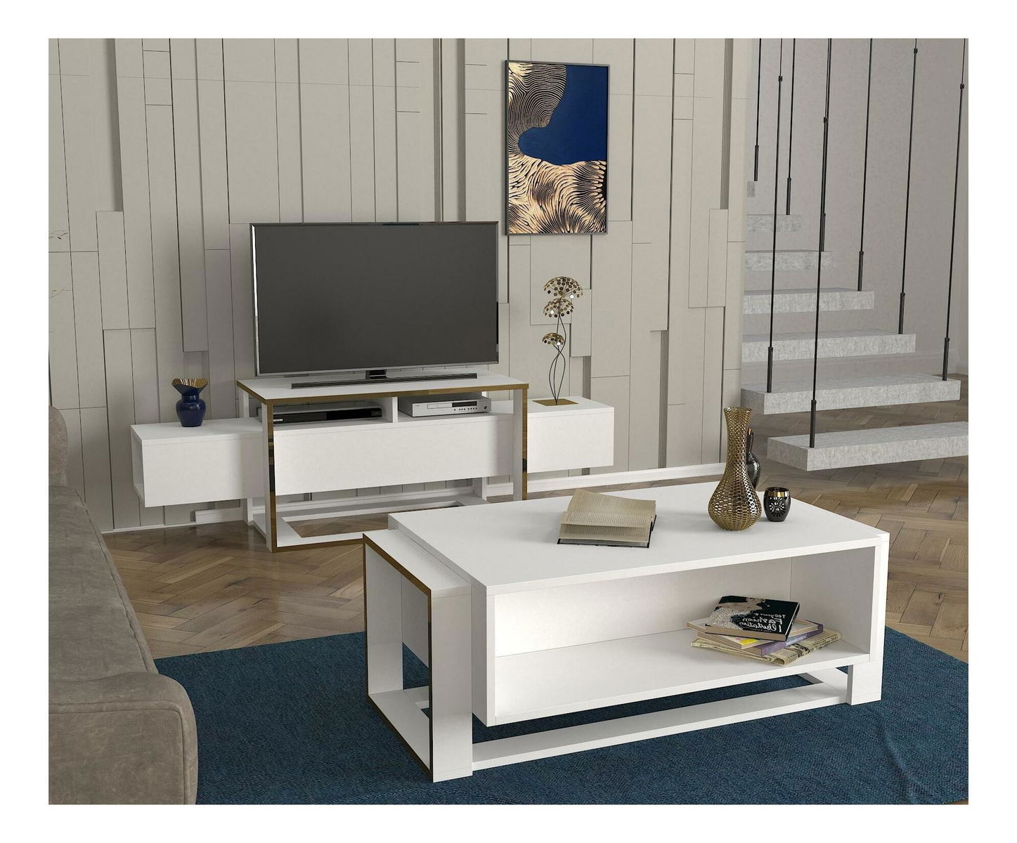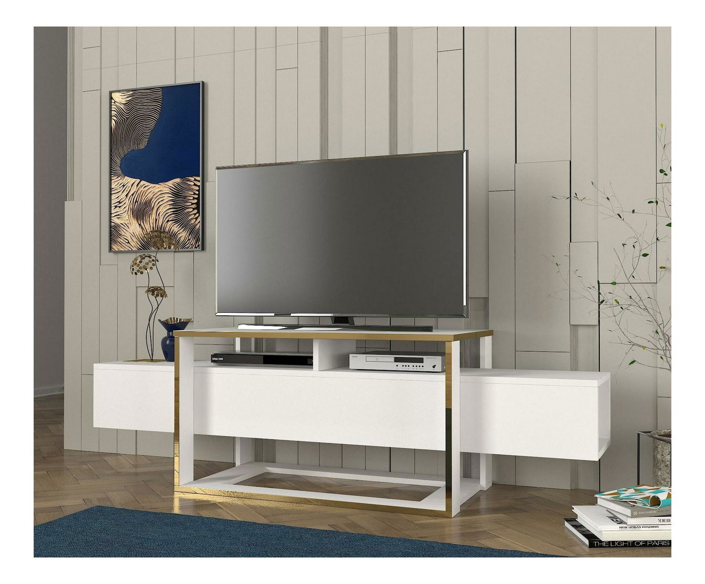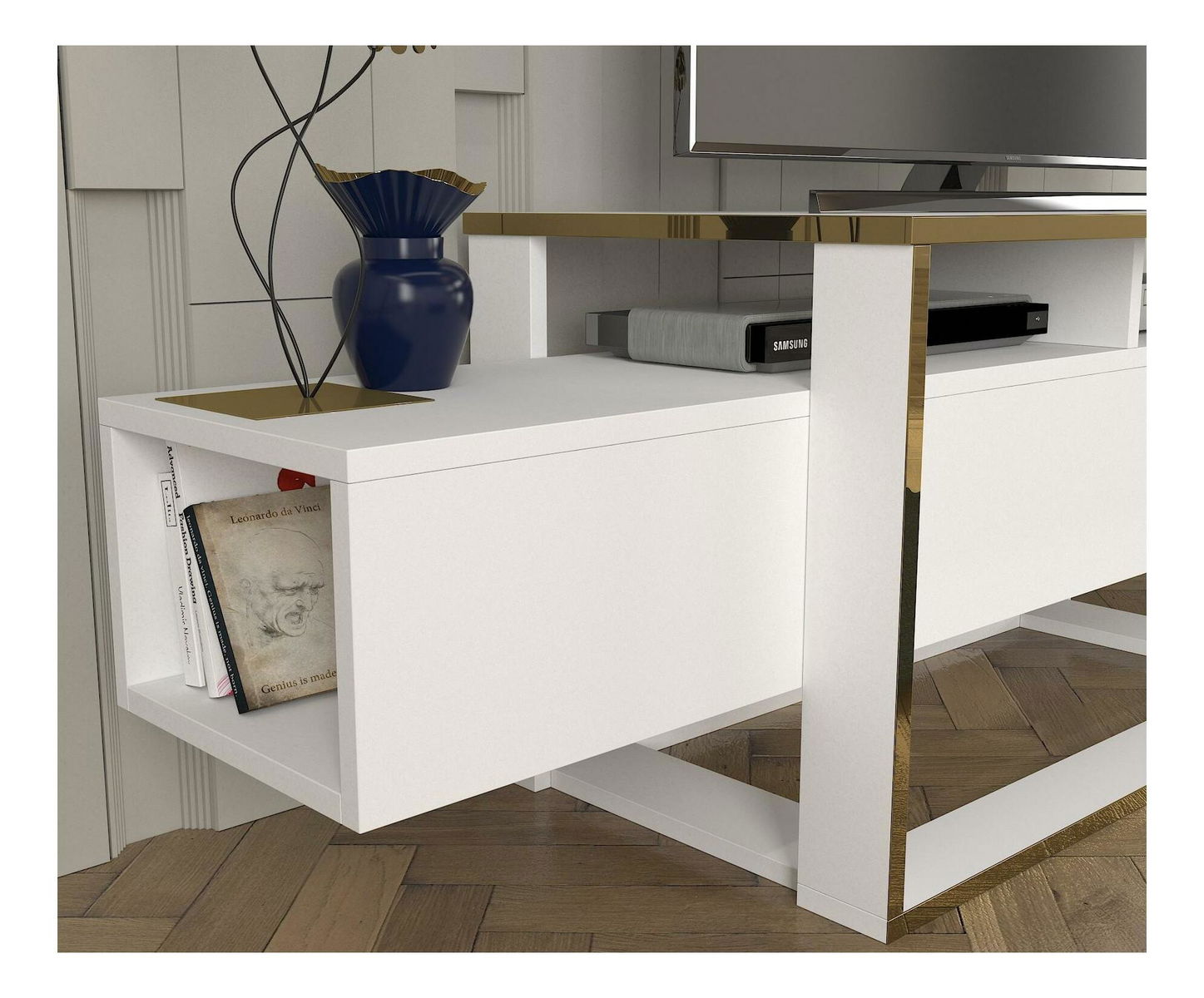 TV stolek/skříňka Biano (bílá + zlatá)