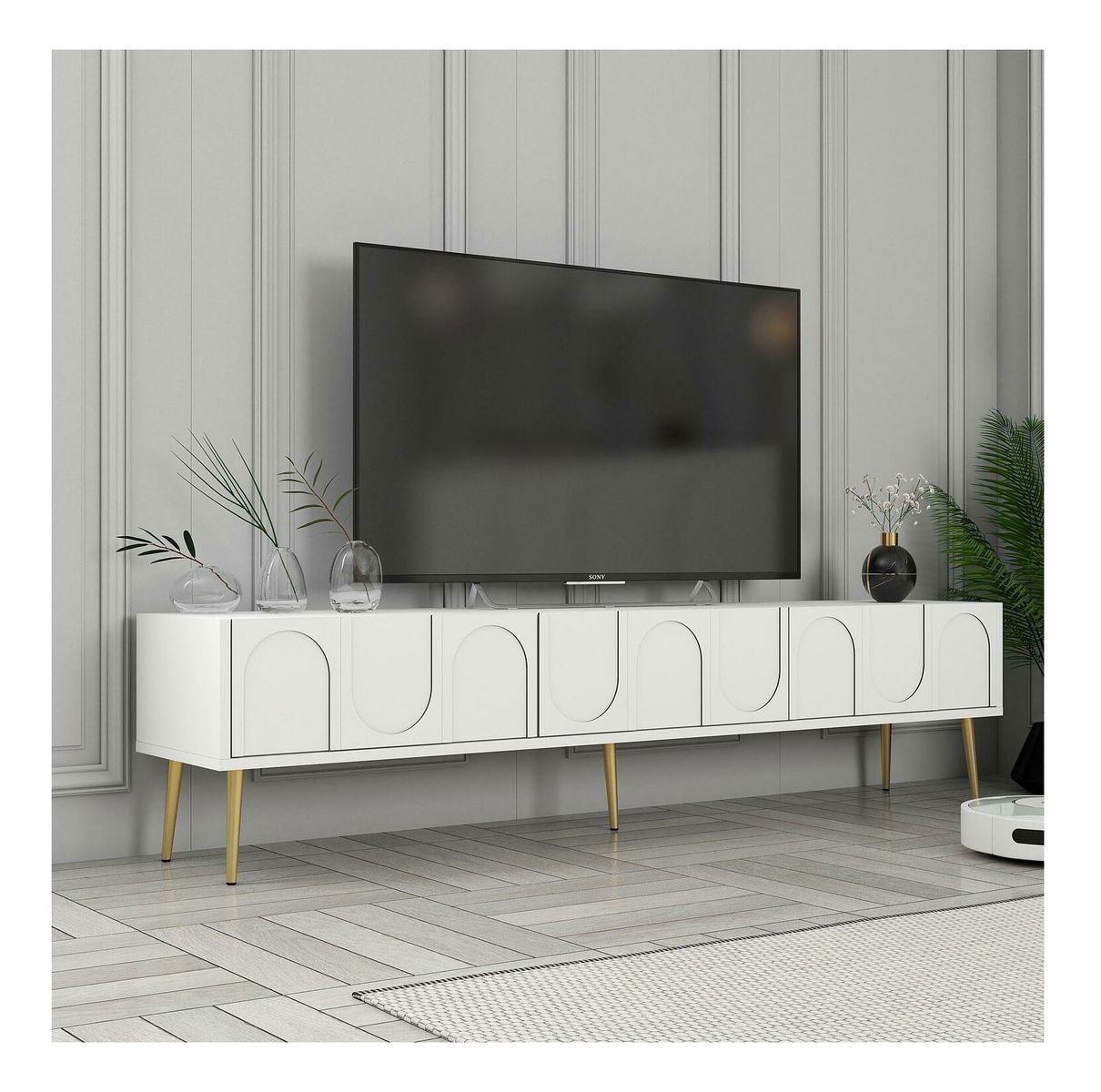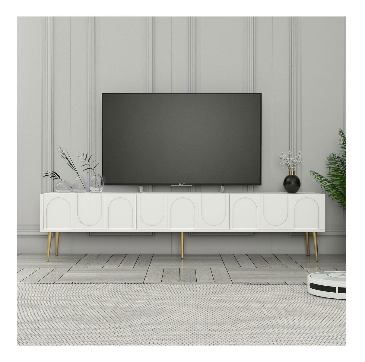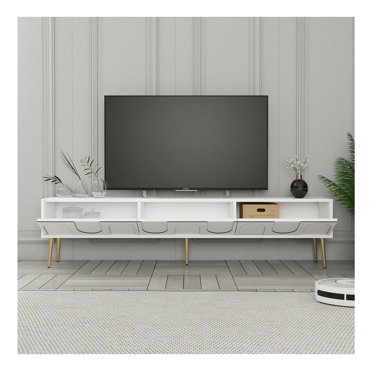 TV stolek/skříňka Bipemu 3 (bílá + zlatá)
