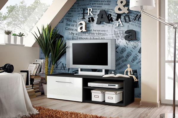 TV stolek/skříňka Bono I jednoduchého a praktického designu se hodí zejména do menších prostor a do studentských pokojů, pracoven nebo do ložnice. Obsahuje otevřený prostor s poličkou a prostor uzavřený dvířky. Decentní úchyt dokonale pasuje do designu nábytku a je dlouhý 25 cm. Je vyráběn ve více barevných provedeních a tak snadno zapadne mezi ostatní nábytek v místnosti.