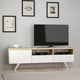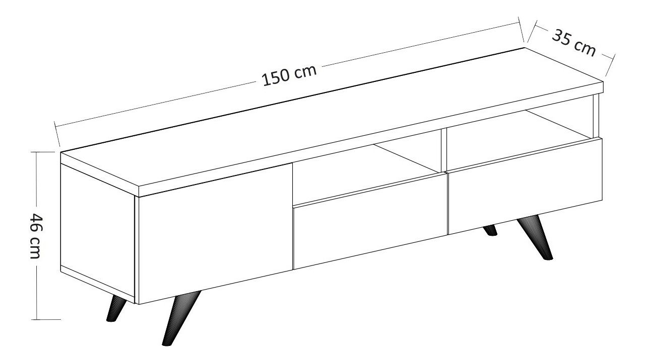 TV stolek/skříňka - Bruk je ideálním doplňkem pro váš domácí interiér. S výškou 46 cm, šířkou 150 cm a hloubkou 35 cm poskytuje dostatek prostoru pro váš televizor a další zařízení. Vyhotoveno z kvalitní 100% melaminové desky, tato skříňka je odolná a trvanlivá. Její dubový a bílý design přidává stylový dotek do každé místnosti. Díky svým úložným prostorům a poličkám nabízí dostatek místa pro různé předměty, abyste je mohli udržovat uklizené a organizované. TV stolek/skříňka - Bruk je perfektní volbou pro ty, kteří hledají funkční a elegantní nábytek pro své audiovizuální potřeby.