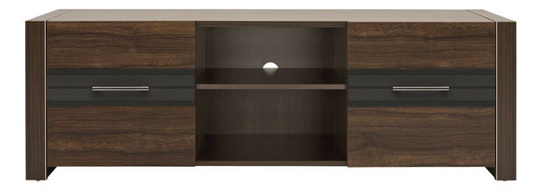 TV stolek obsahuje 2 skříňky s jednou poličkou a 1 otevřenou polici. Na zadní stěně stolku je praktický otvor pro kabely.