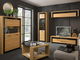 TV stolek je rozdělen na 3 části dělícími částmi. Po stranách se nacházejí dvířka, která ukrývají dostatek prostoru pro vaše drobnosti. Střední část je rozdělena na dvě části, přičemž otevřená nabízí prostor pro audio / video příslušenství.
