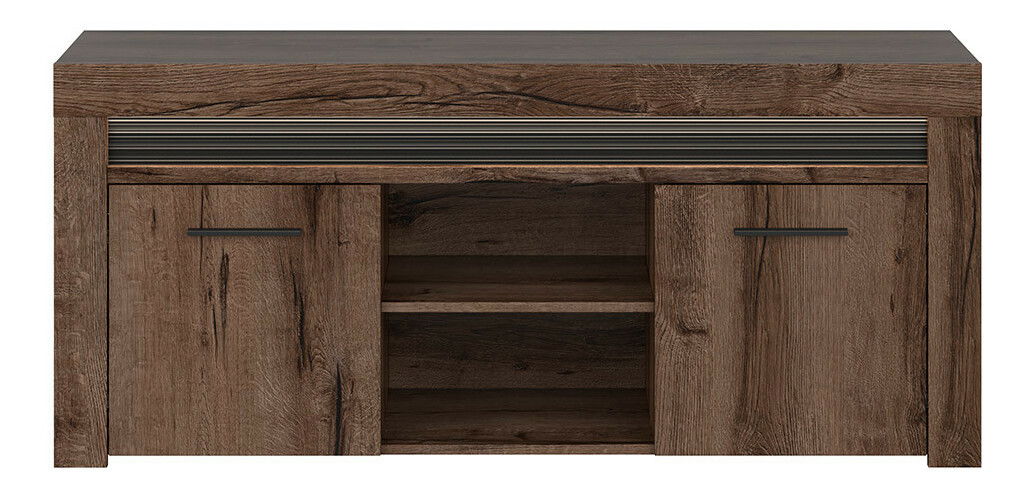 ZobrazitKrásný TV stolek, který vyniká zejména elegantním barevným provedením, bude ve vaší obývacím pokoji velmi užitečným doplňkem. Na jeho prostornou a stabilní vrchní desku bez problémů umístíte televizor. Otevřené poličky velmi dobře poslouží pro herní konzoli či jiné AV zařízení. Stolek má i dvířka na levé a pravé straně. Dvířka se otevírají pomocí podlouhlých tenčích úchytů.