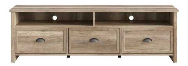 Praktický TV stolek v provensálském stylu s kovovými úchyty. Obsahuje tři zásuvky a otevřené místo pro uložení audio / video techniky. Na zadní straně stolku jsou praktické otvory pro kabely. Zásuvky jsou na válečkových kolejničkách.